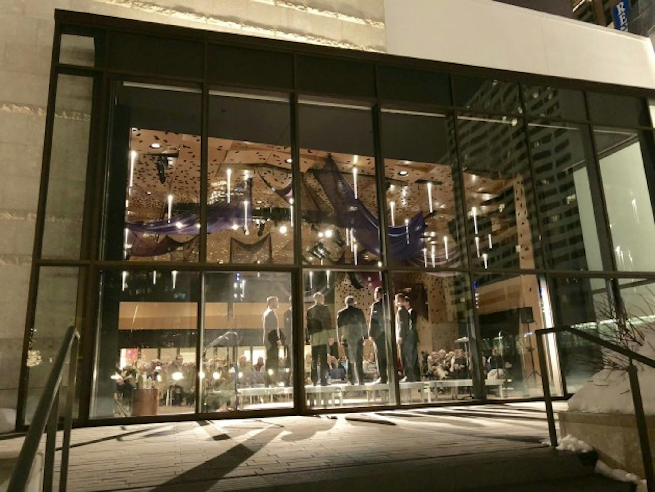 As seen from the street, Cantus performed recently at Westminster Hall. (photo by Tom Northenscold)