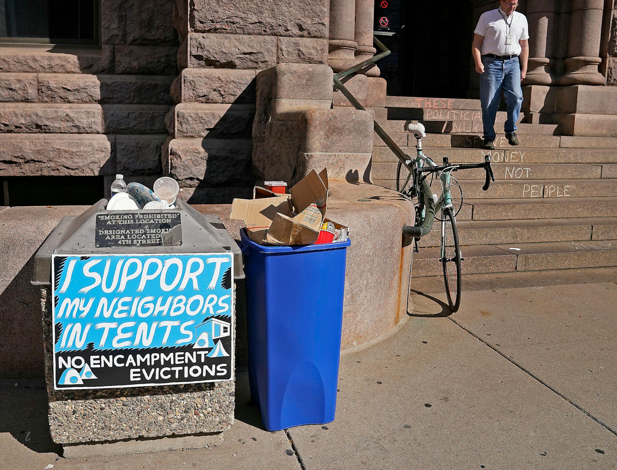 Inside, council members advanced a set of recommendations from housing staff to transfer city funds to Hennepin County as part of a strategy to let the county lead on providing services to people experiencing unsheltered homelessness.