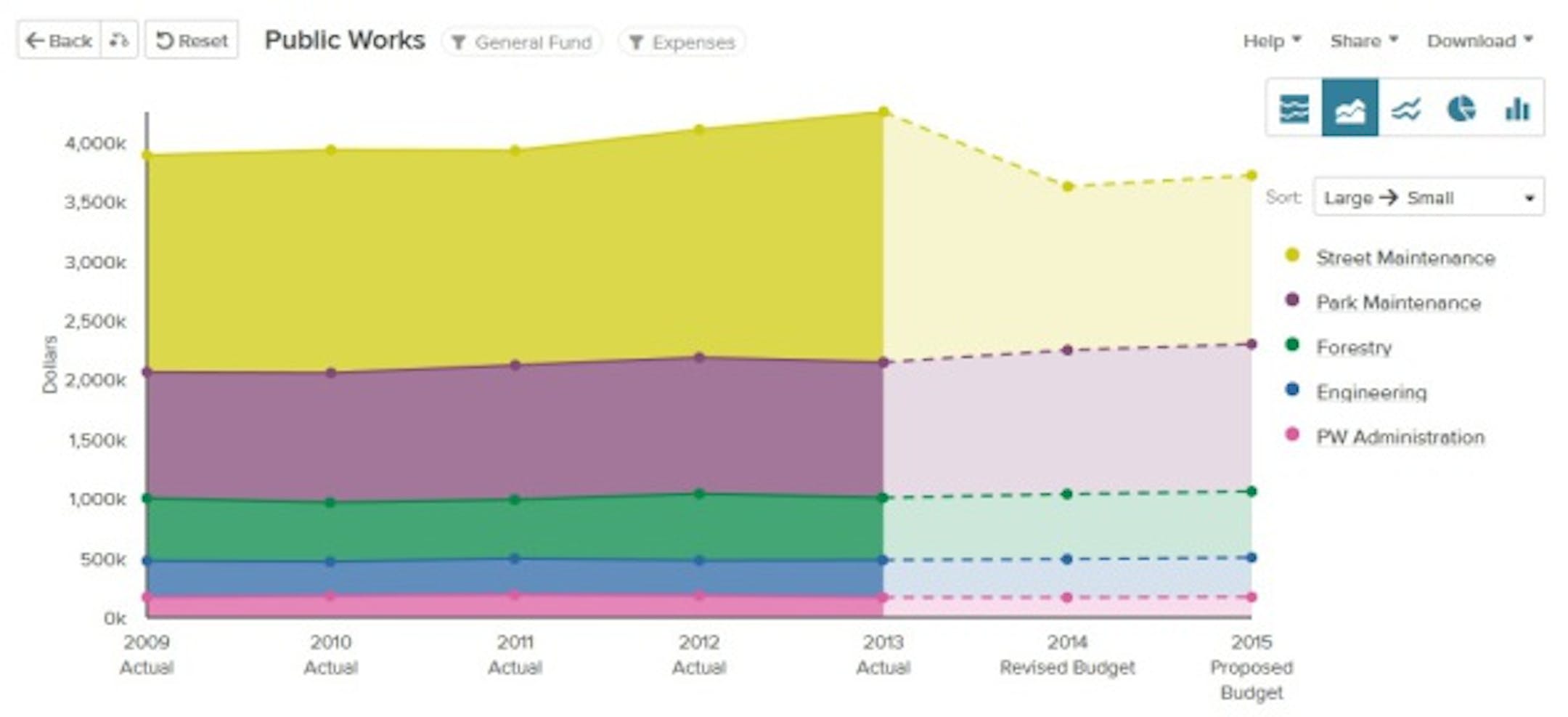 Above: The City of Richfield's OpenGov page, featuring their public works expenditures over time.