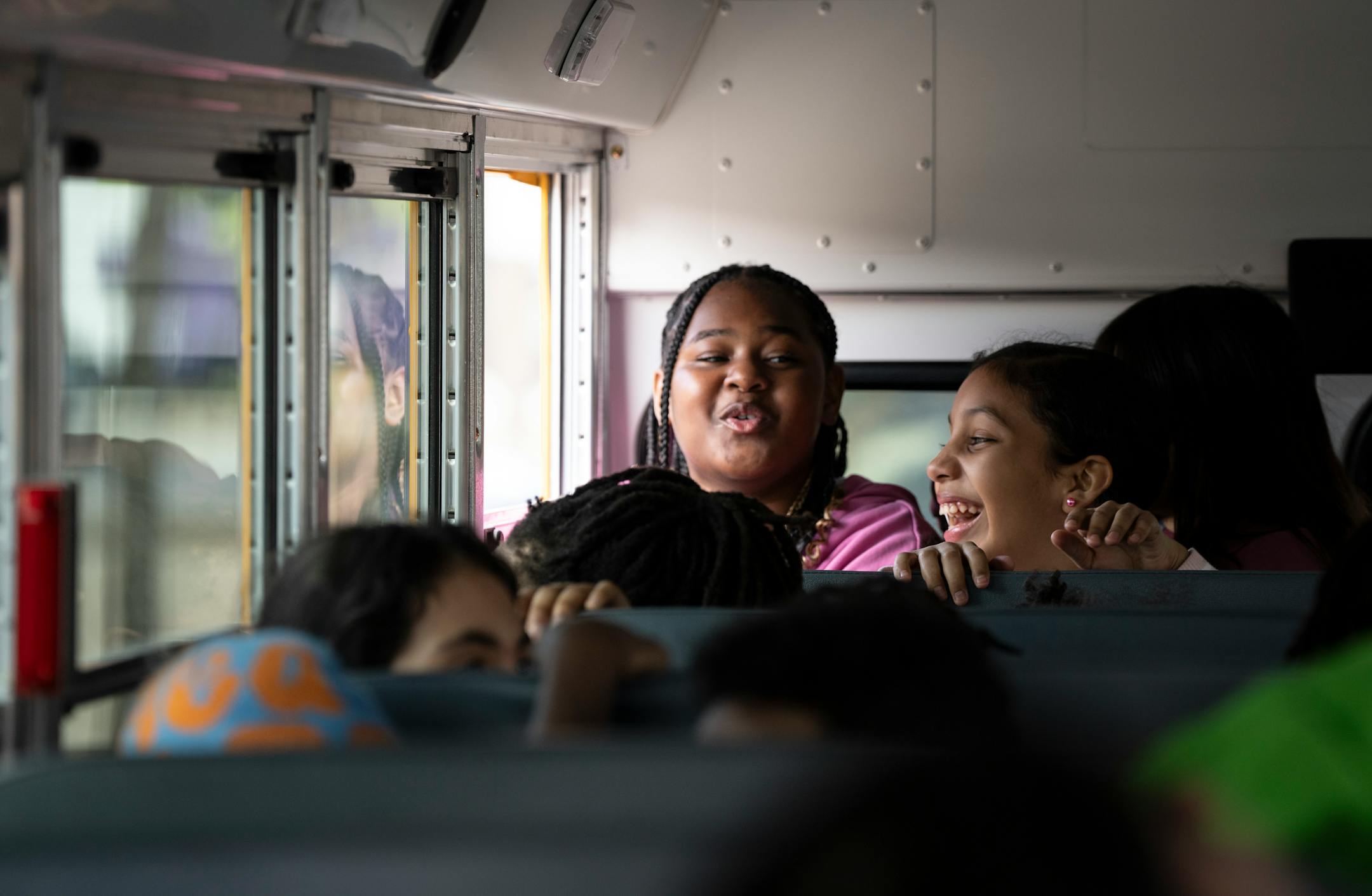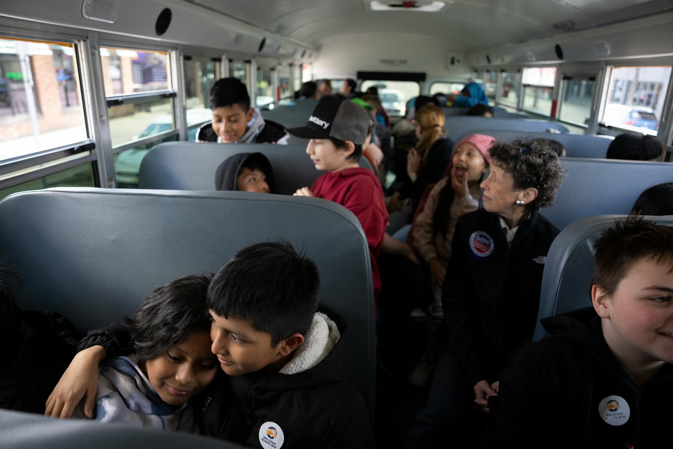 Fifth-grade students at Whittier International Elementary School in Minneapolis piled onto the electric school bus for a short ride through the neighborhood, a field trip that grew out of a letter-writing campaign they staged urging district leadership to buy it.