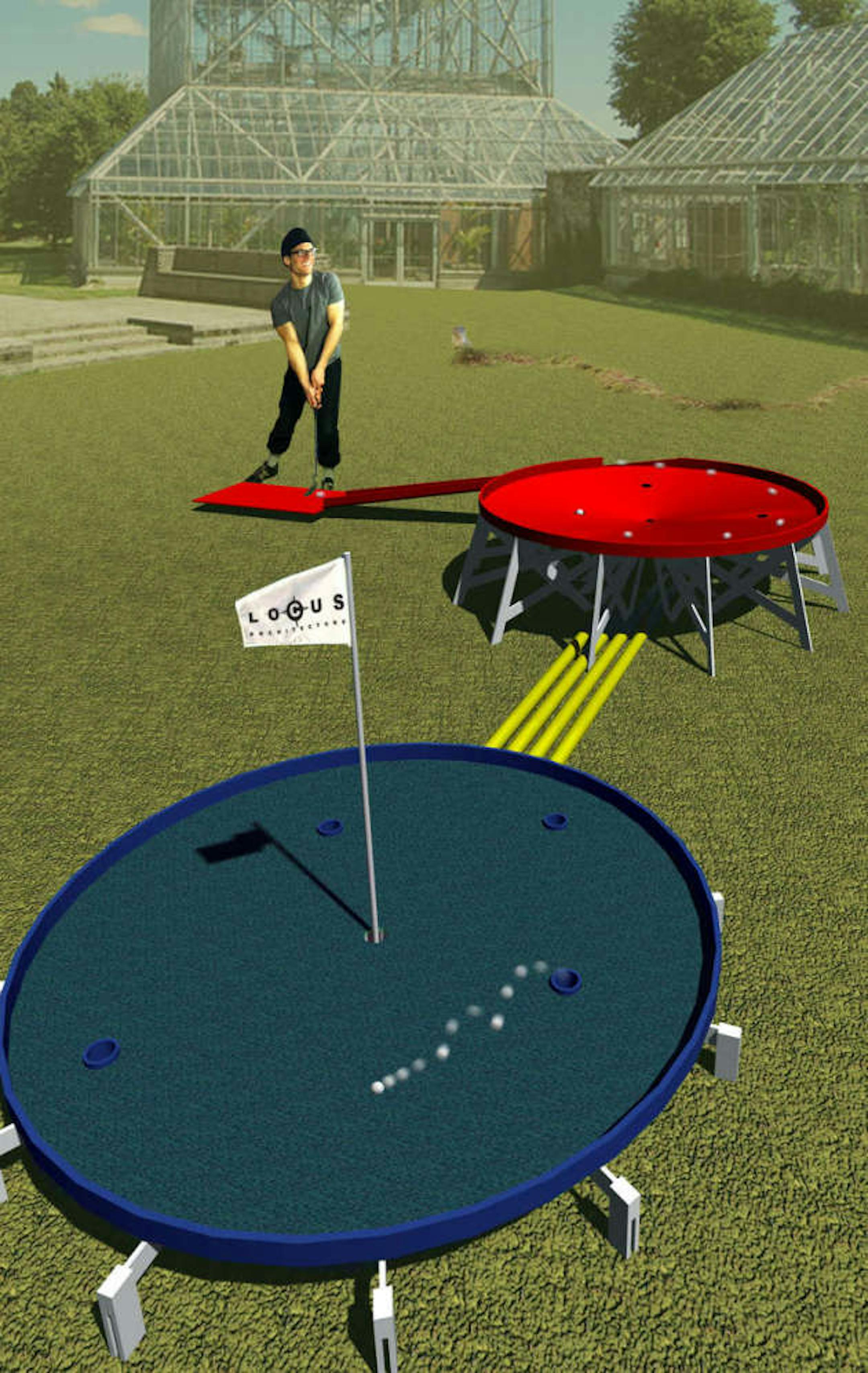 The mini-golf course, open May 23 - September 8, will be designed by Locus Architecture; Makesh!t; David Lefkowitz and Stephen Mohring; Nicola Carpenter, Susanne Carpenter and Bryan Carpenter; Sarah Balk McGrill and Wesley Thayne Petersen; David Hultman and David Wulfman; Aaron Dysart; Tom Loftus and Robin Schwartzman; Sean Donovan; Stormi Balise; Jeffrey and Tyler Whitehead; Karl Unnasch; Alyssa Baguss and Alison Hiltner; Chris Larson and U. of Mn. students.