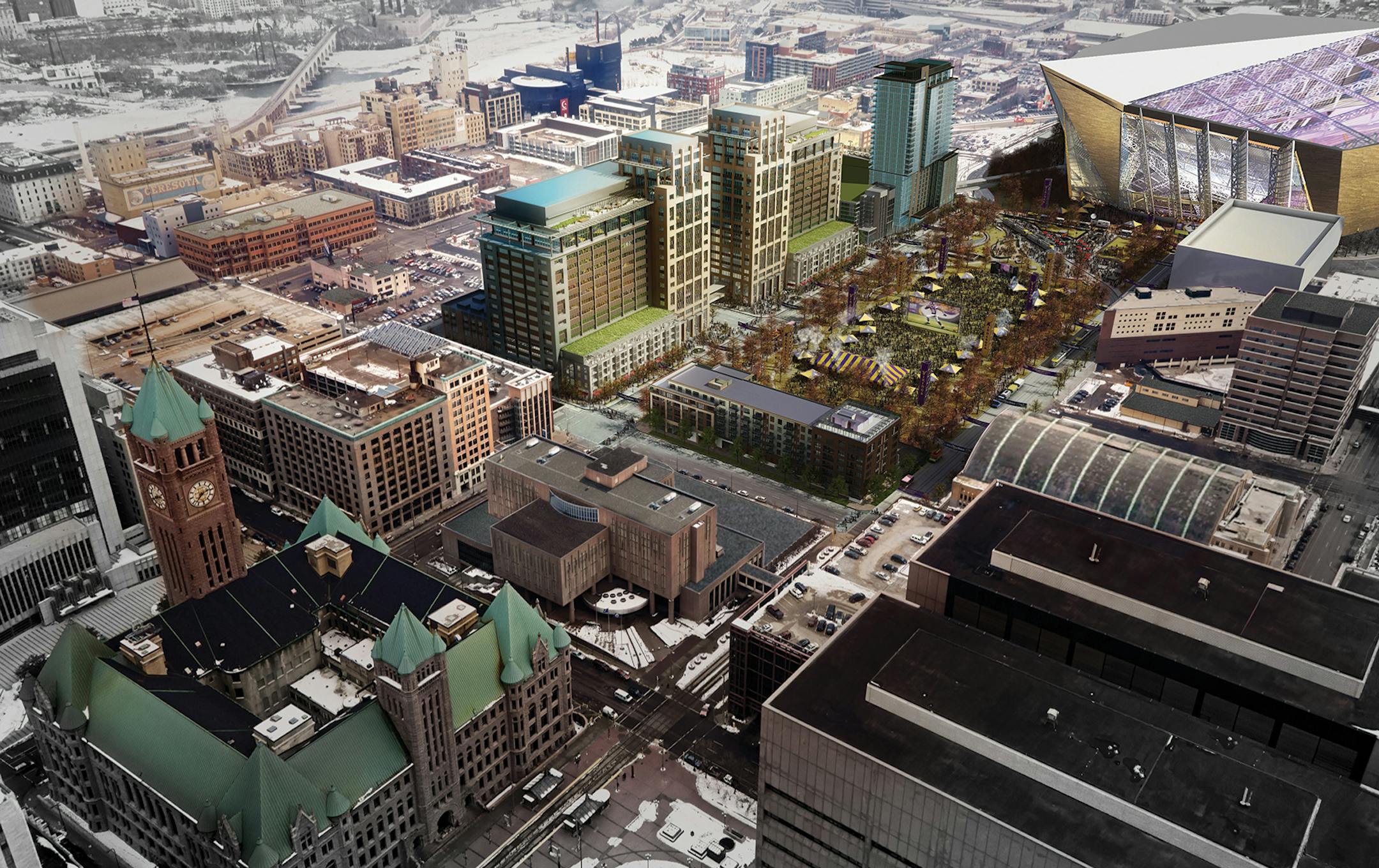 Ryan is the developer of the overall $400 million Downtown East project, which includes twin office towers for Wells Fargo & Co., 200 apartments, retail shops and restaurants, a 1,610-space parking ramp and a two-block public park near the new Vikings stadium.