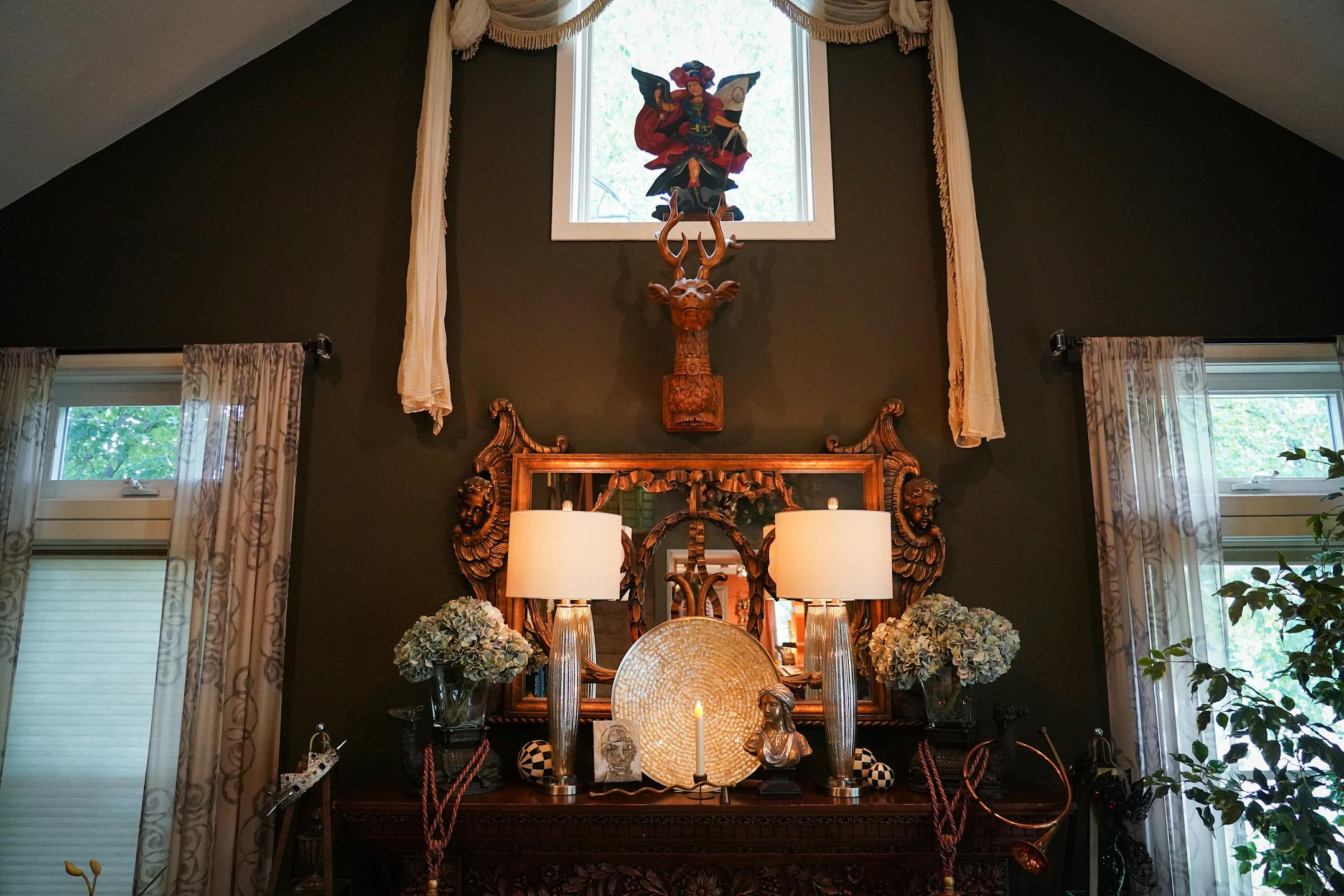 Anderson's eclectic personality and decorating finesse is apparent in his modest south Minneapolis home, which is outfitted in a grand style. The decor is a mix of items he has designed or purchased over the years, as well as family heirlooms and pieces from around the world given to him by friends.