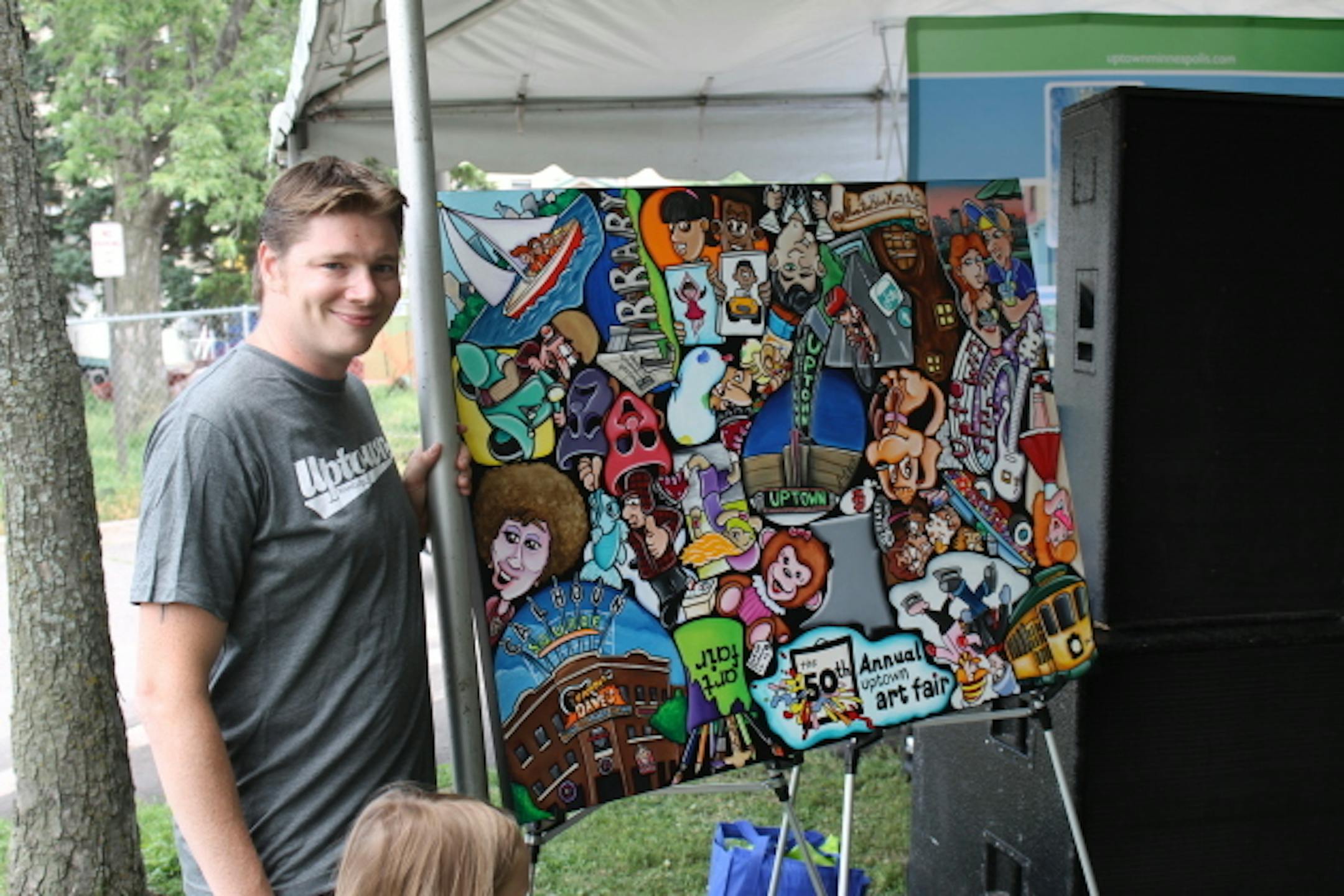 Artist Shane Anderson of Apple Valley proudly displays his 50th Uptown Art Fair commemorative print.