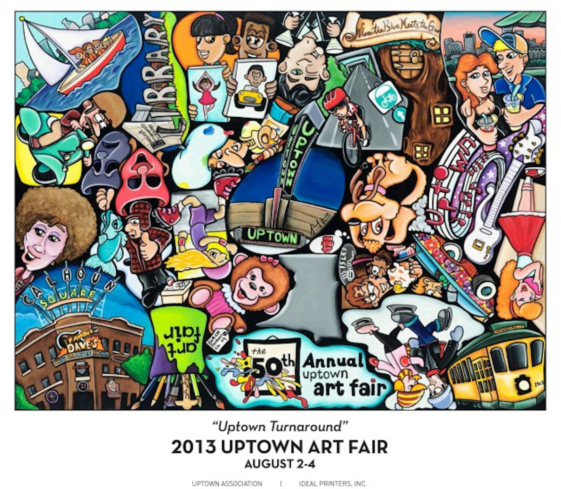 To commemorate its 50th season, the Uptown event assembled a time capsule that includes a flash drive of "memories" recorded by Uptown fair veterans, a 2013 Uptown bike-and-trails map, a bowling chip from Bryant Lake Bowl and a Minneapolis police department badge among other memorabilia. Artist Shane Anderson of Apple Valley produced a commemorative print, shown here, to mark the occasion.