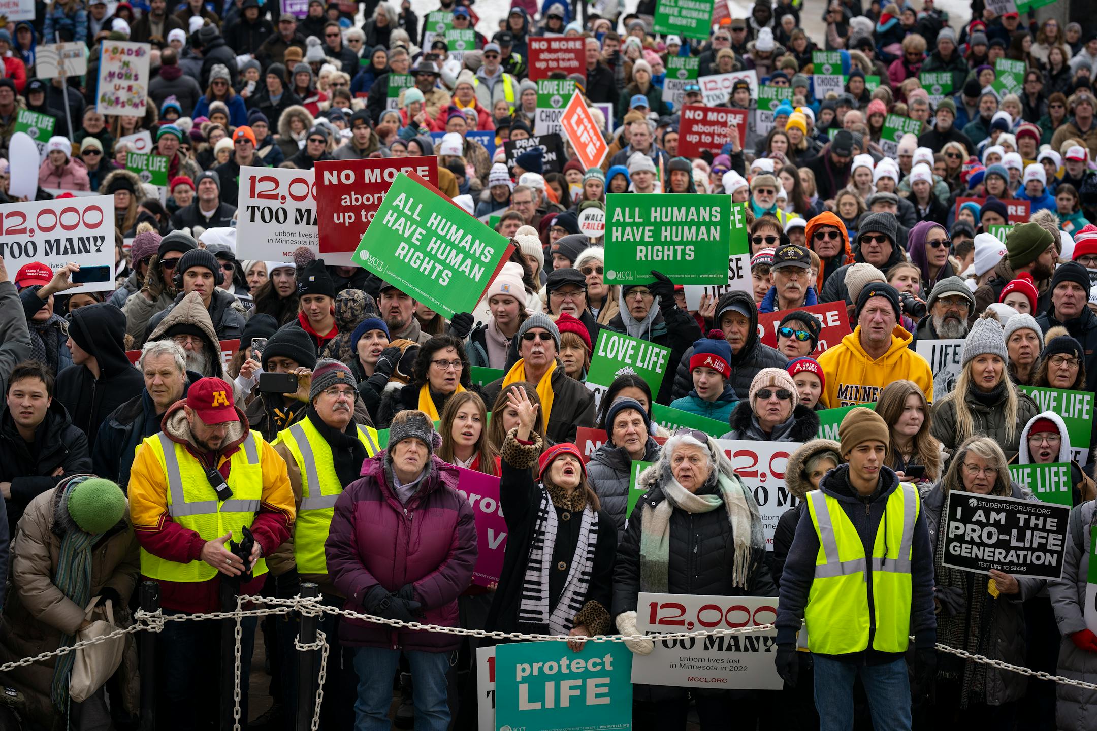 Thousands of abortion opponents gathered on the State Capitol steps on the 51st anniversary of the Roe v. Wade decision Monday to mark the increase in abortions in the state as Minnesota becomes an island of access in the Midwest.