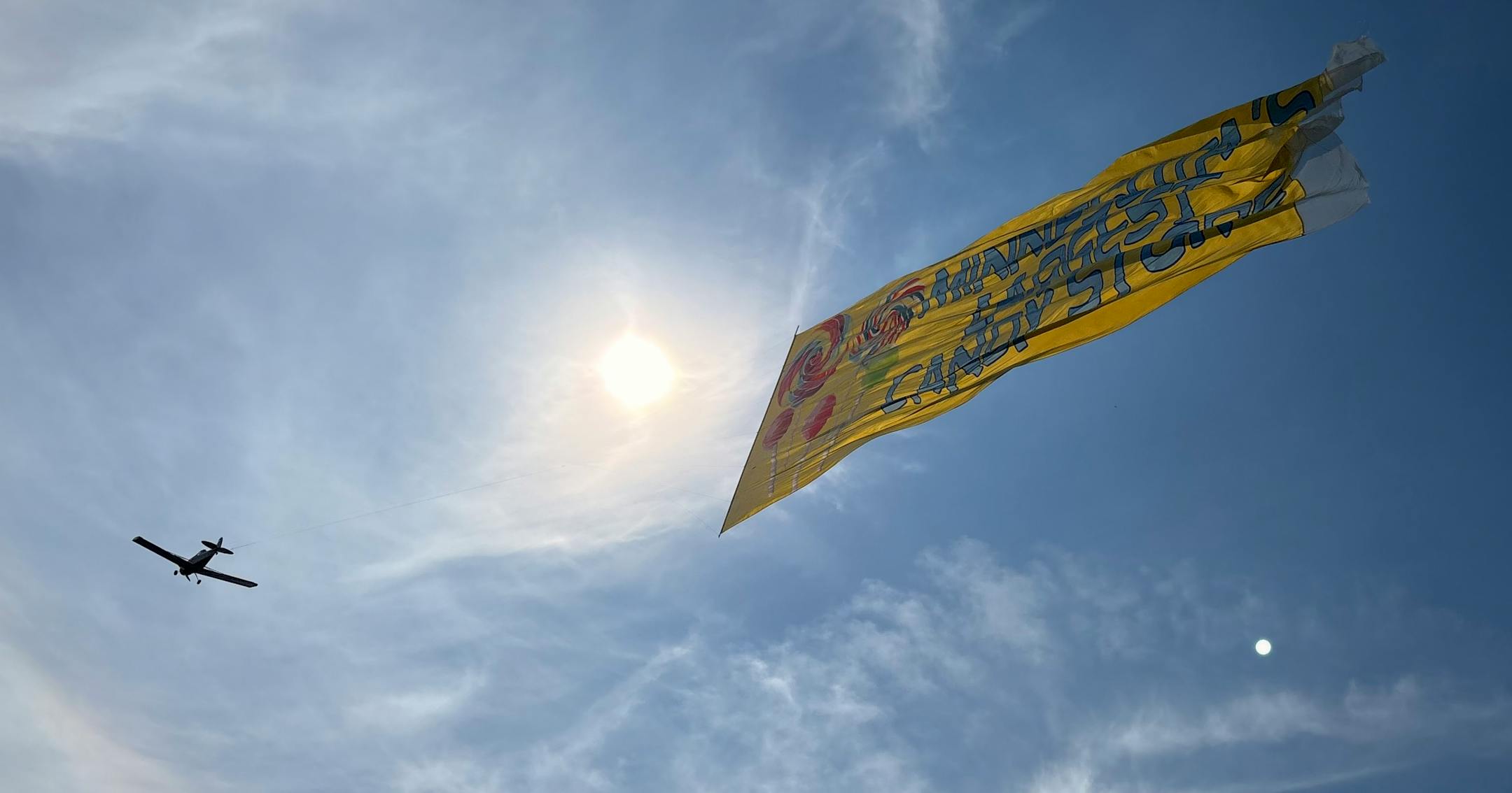 Thus begins another job from the only flying billboard company based in Minnesota.