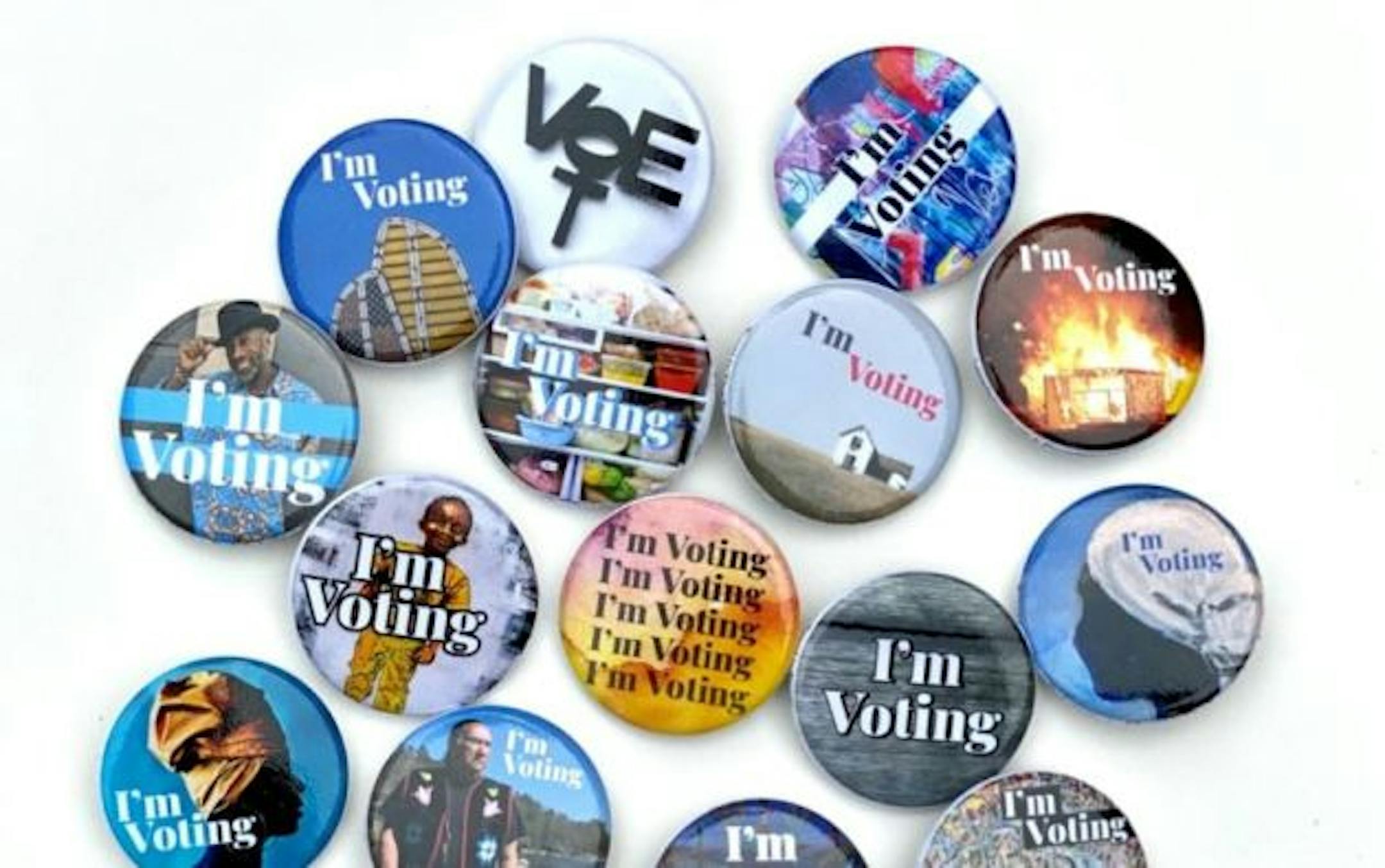 "I'm voting." It's a simple yet effective declaration that's now on more than 40,000 buttons and stickers available at more than 50 businesses and arts venues in Minnesota.