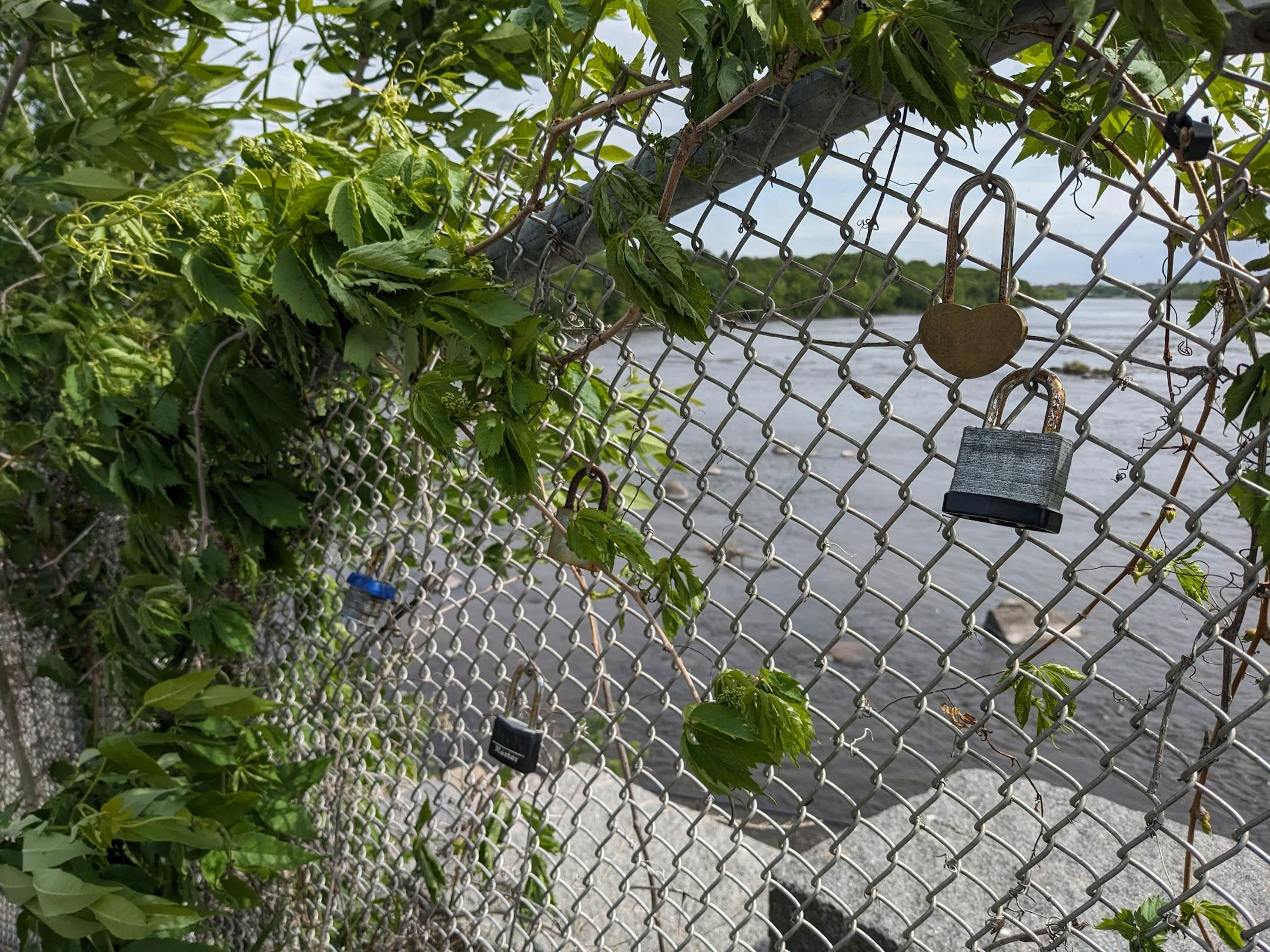 A year later, the couple discovered a hidden gem in Royalton, about 30 miles north of St. Cloud: a bridge at the trailhead for the Soo Line South Trail, which spans the Mississippi, next to the century-old Blanchard Dam. More than five dozen other padlocks, weatherworn and some dating back more than a decade, hung from the fence. Here, the golden lovebirds would be safe, they thought.
