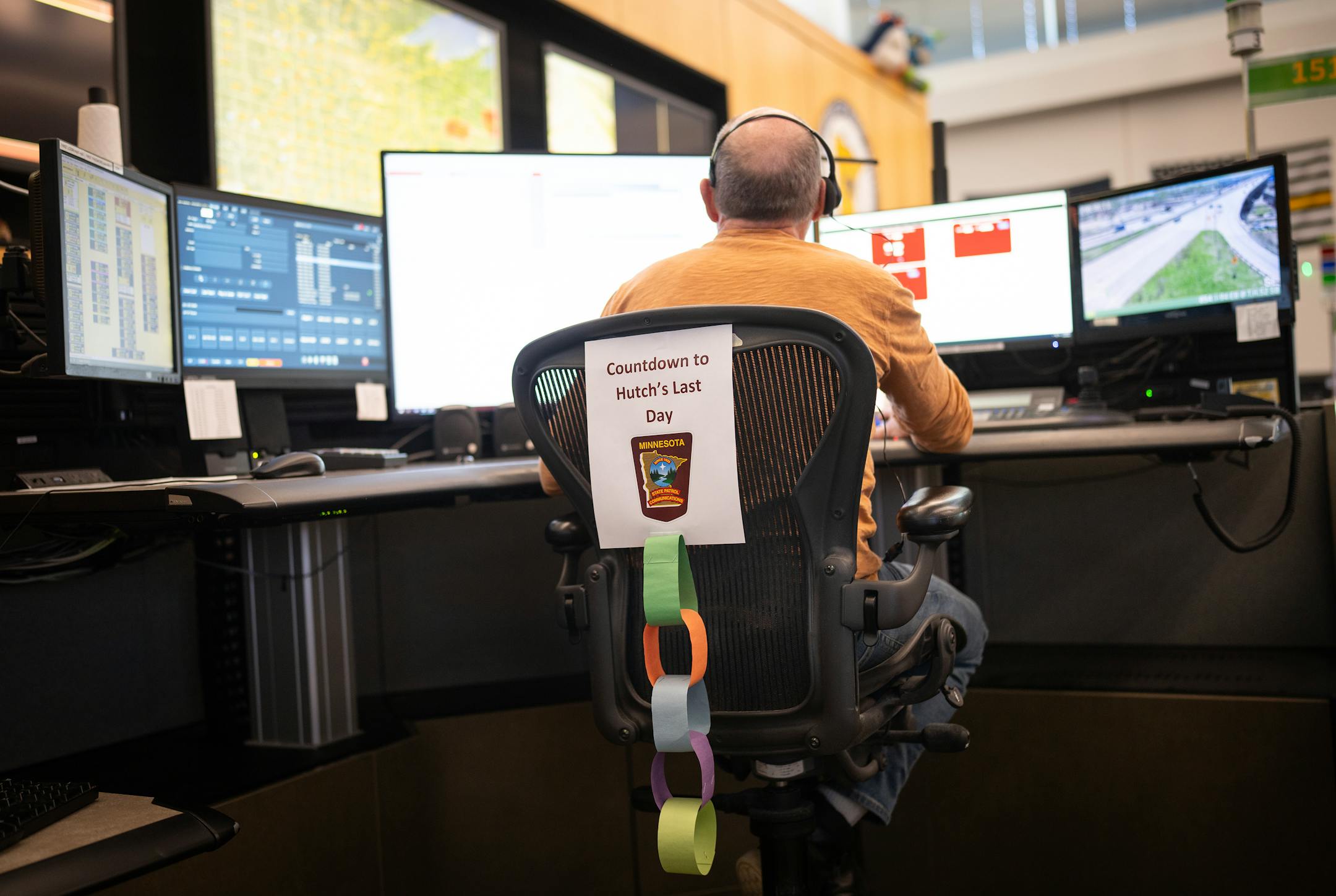 Now when Hutchins comes into the office, he cuts off another loop on the paper chain taped to the back of his chair, counting down the days until his retirement on May 6. His career fielding emergency calls and guiding first responders for the State Patrol has spanned 40 years.
