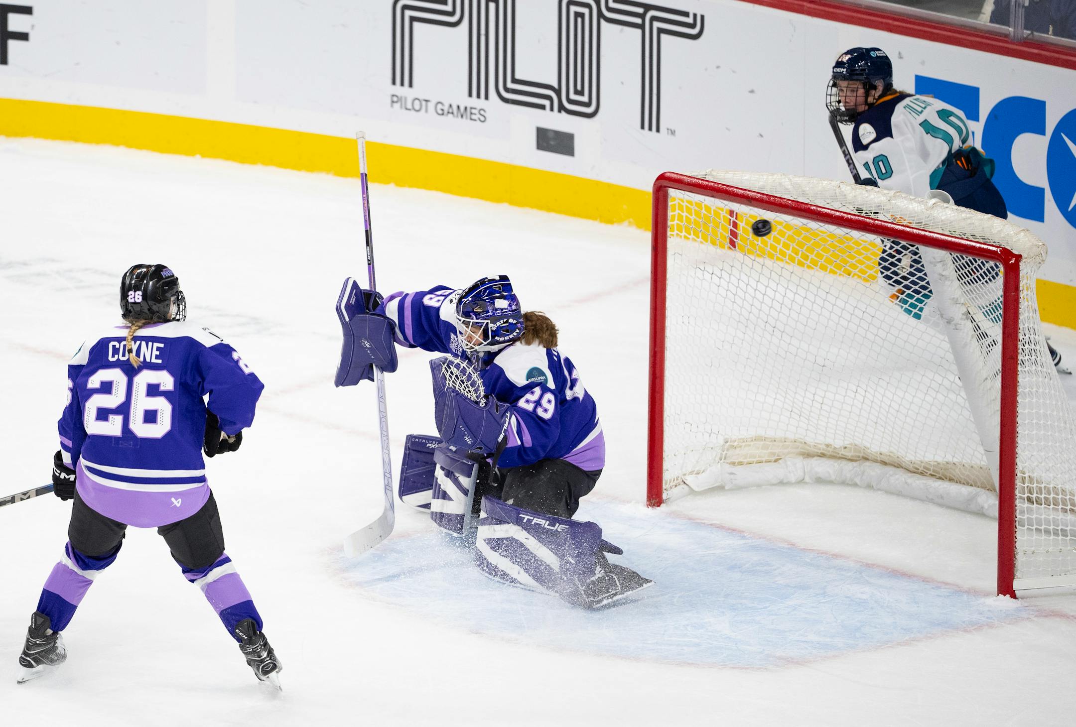 After Kelly Pannek found Zumwinkle for her goal, captain Kendall Coyne Schofield doubled the lead in the first, crashing the net as the Frost’s first-round draft pick, defender Claire Thompson, slung the puck in from deep.