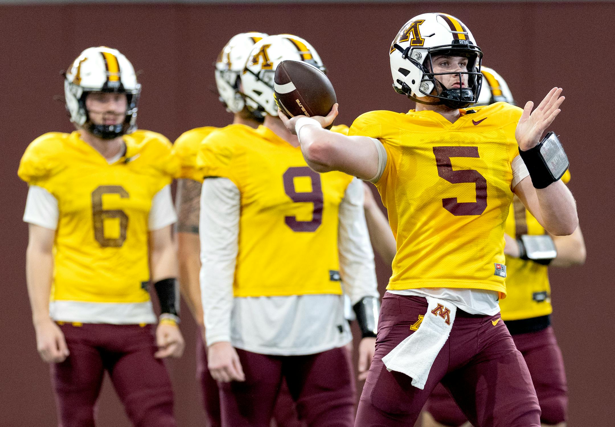 With Lindsey established, if not formally announced, as the starting quarterback, the Gophers want to have someone ready to step in if Lindsey is sidelined. Old Dominion transfer Emmett Morehead, Virginia Tech transfer Dylan Wittke and redshirt sophomore Max Shikenjanski are battling for the backup job. Shikenjanski’s advantage is that he’s entering his third year in offensive coordinator Greg Harbaugh Jr.’s system. Morehead’s edge is his four career starts at Boston College, which he attended from 2021-23. True freshman Jackson Kollock likely will be redshirted.