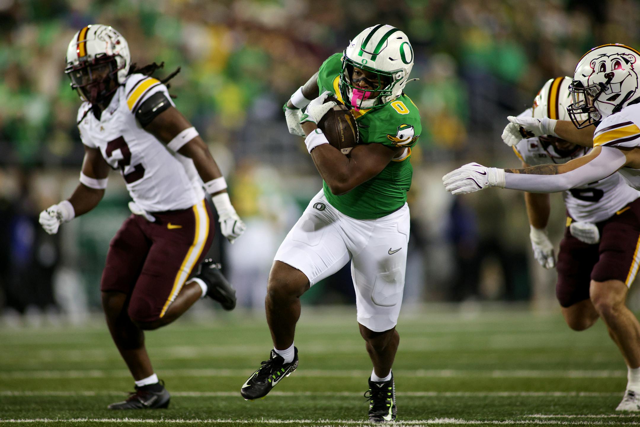 Oregon had three first-half touchdown drives of 75 yards and another of 66 in building a 28-6 halftime lead. The Ducks amassed 332 first-half yards to Minnesota’s 94. Ducks quarterback Dante Moore was as good as advertised, completing a school-record 90 percent (27-of-30) of his passes for 306 yards and two TDs. For the game, Oregon’s six TD drives averaged 72.7 yards, and the Ducks outgained Minnesota 510-200.