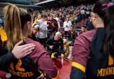 Cook left college coaching in January after his mighty run at Nebraska, where he won four national championships, and was the analyst for the doubleheader in Sioux Falls. It took defending national champion Penn State five sets to defeat Kansas in the opener, an extra-long match that pushed the A&M-Gophers start back to 8:45 p.m.