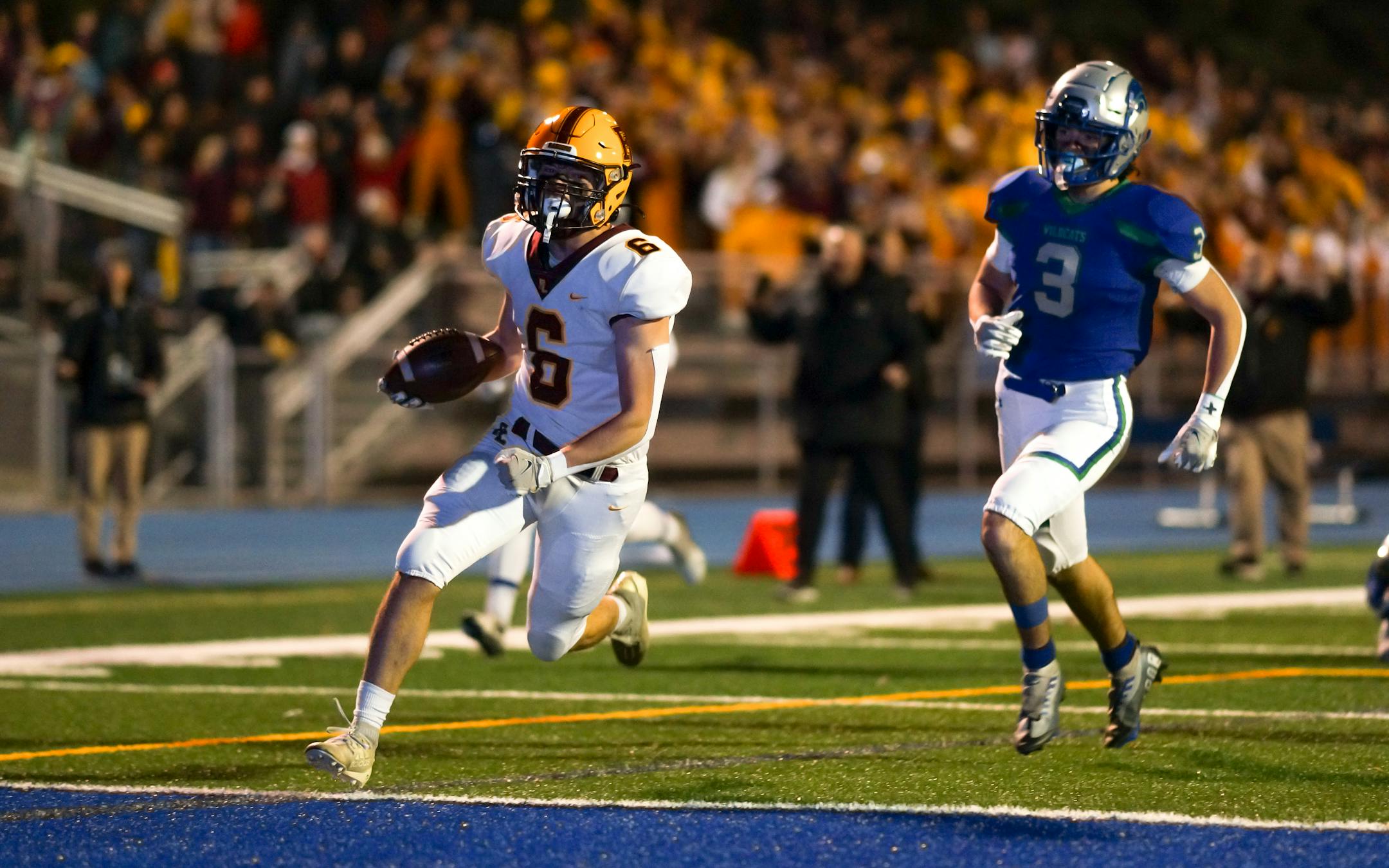 Replays appeared to show Johnson failed to get his foot down in bounds, but officials ruled the catch good and Forest Lake took a 20-0 lead into halftime.