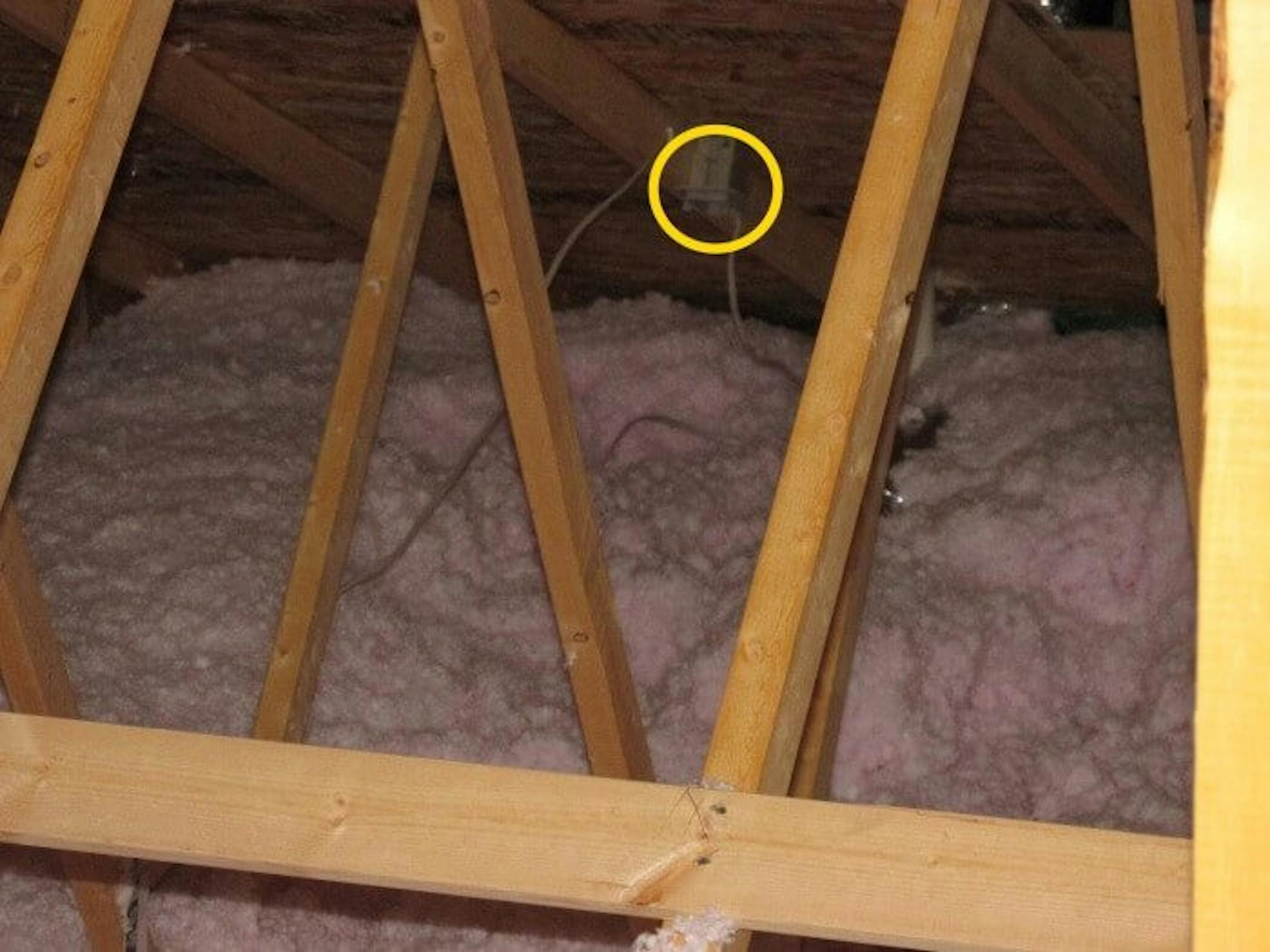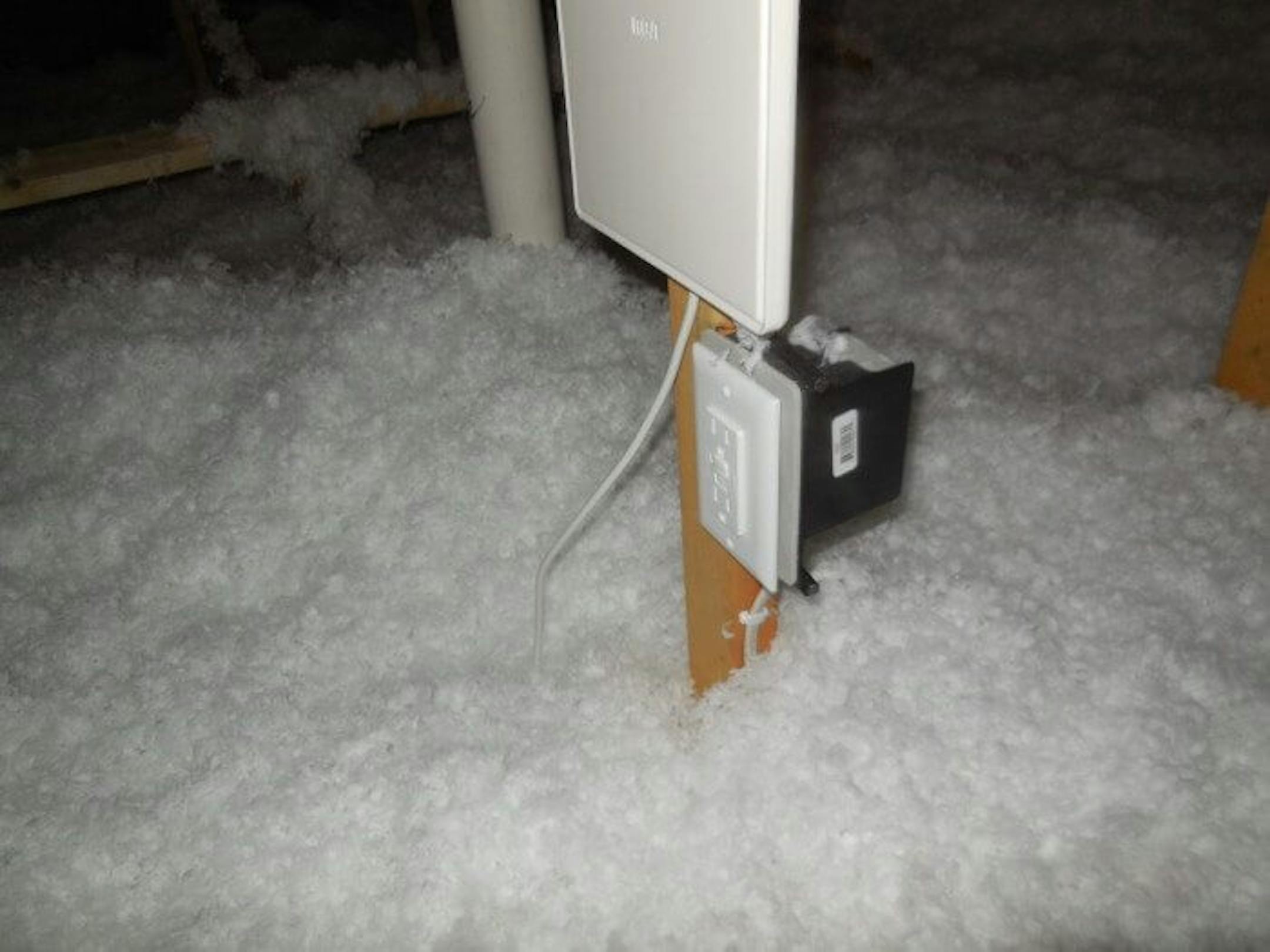 As for insulation and water leaks being the only things that could be viewed in the attic, take a look through a few of these photos that have come from new construction attics. New construction. Brand spanking new, inspected by the city and everything. To start, here's a missing cover plate at a junction box in an attic.