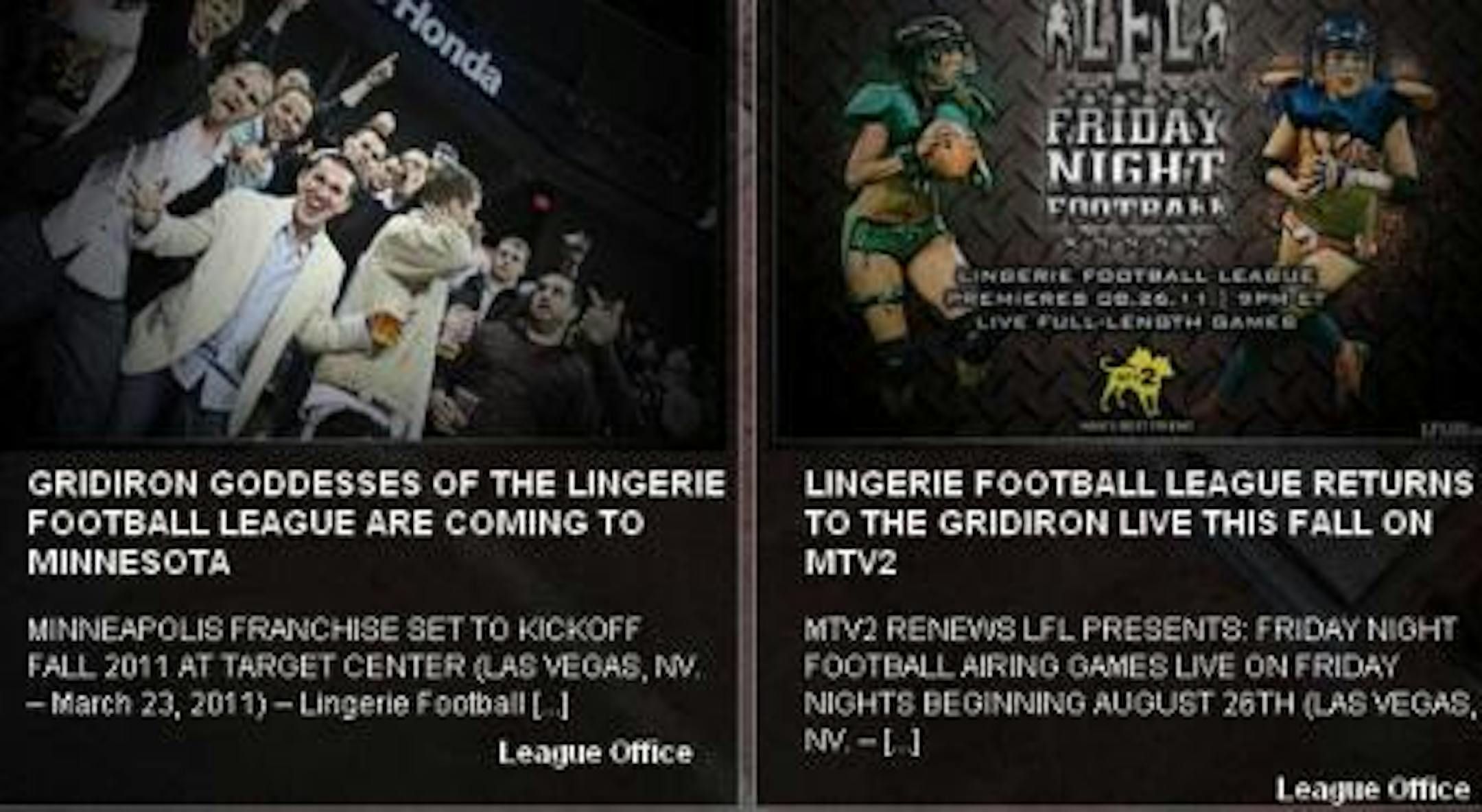 If you don't yet know what the Lingerie Football League is, well, it's pretty much what it sounds like. And if perusing the web site isn't good enough ... you can apparently check it out for yourself Oct. 1 at Target Center. Yes, that's when the new Minneapolis franchise in the LFL is set to have its home opener. Commenter Newbie made this discovery, and he has a few talking points, per the press release linked above. Newbie?