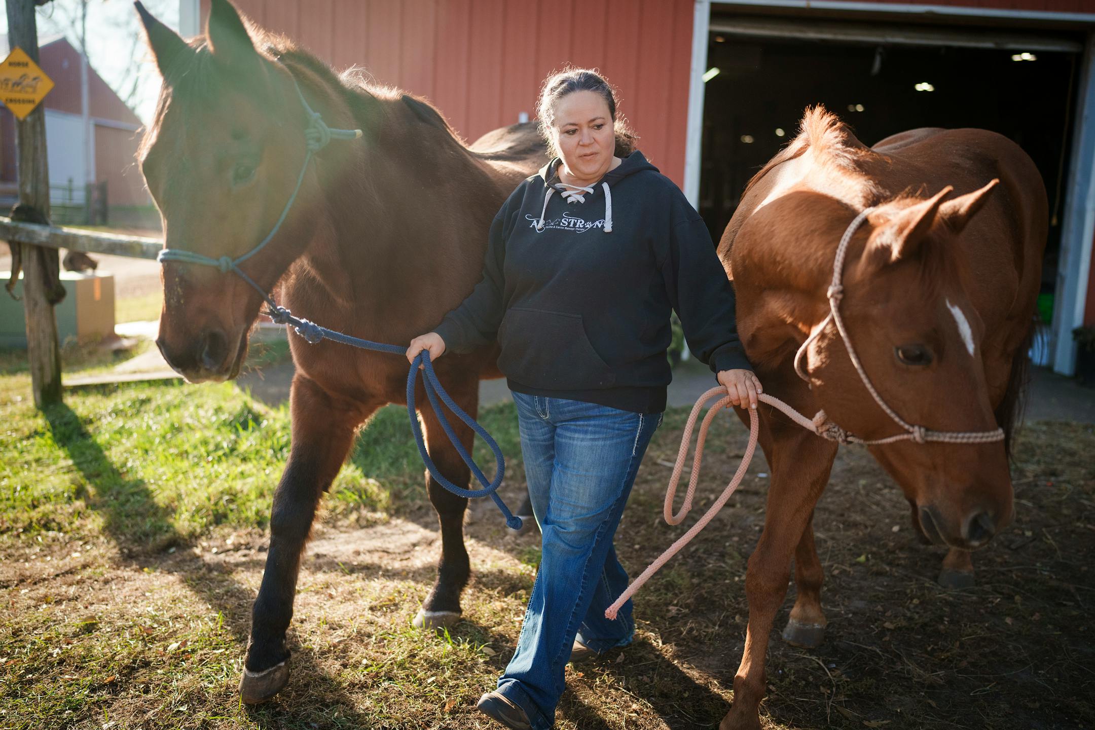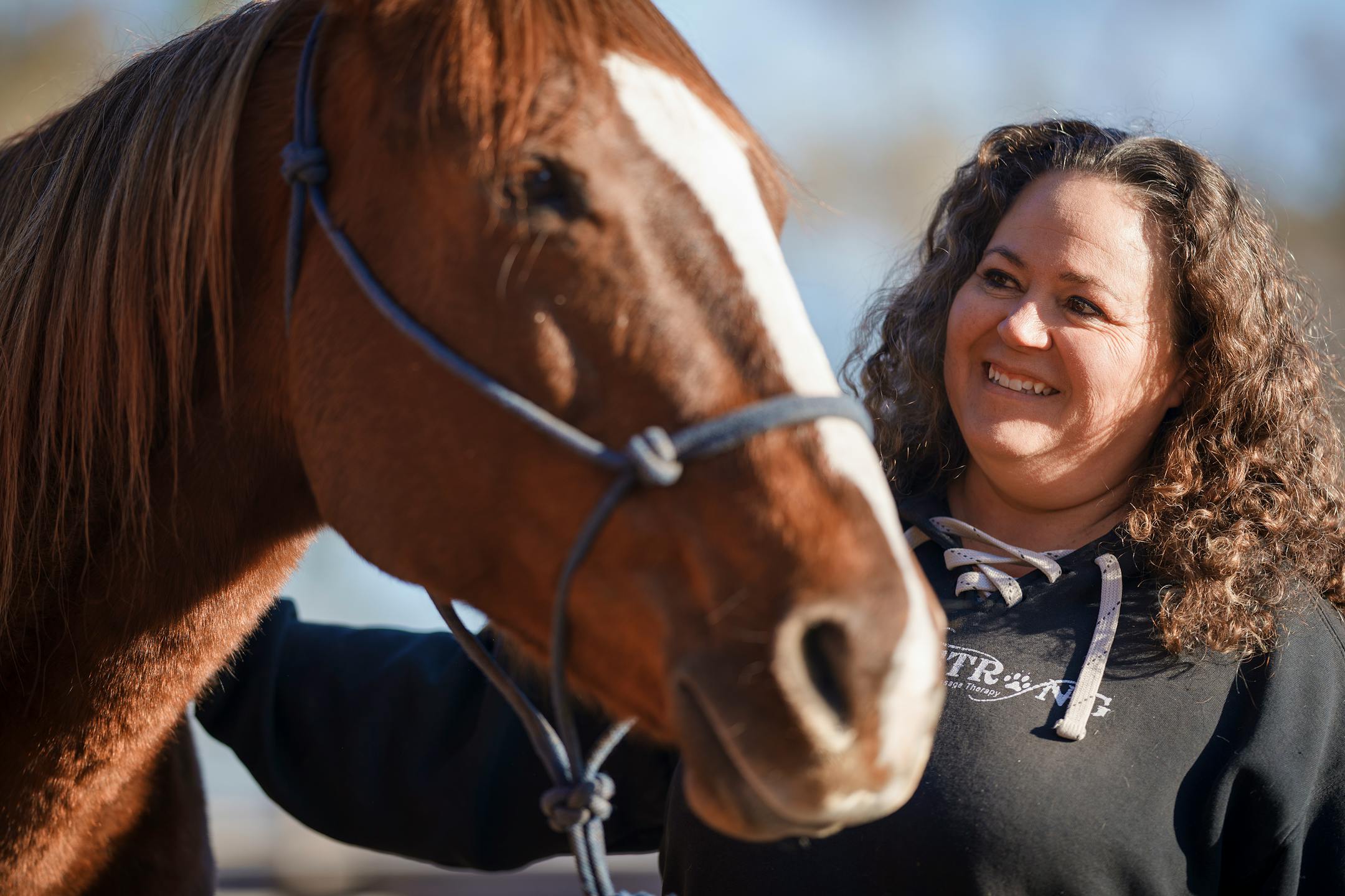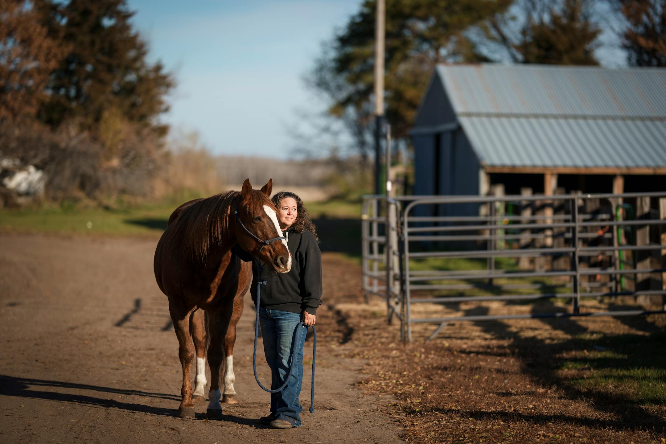 Mox, who has a bachelor’s degree in equine science from the University of Minnesota-Crookston, remembers seeing those benefits when she entered an older horse in a barrel racing competition. If she didn’t “stretch him out” before the race, her horse would stumble after the first barrel. Massage became part of her pre-competition routine. She learned that she could turn it into a career and launched Armstrong Equine Massage in 2013 to teach the practice to her clientele of recreational riders and the occasional aspiring veterinarian.
