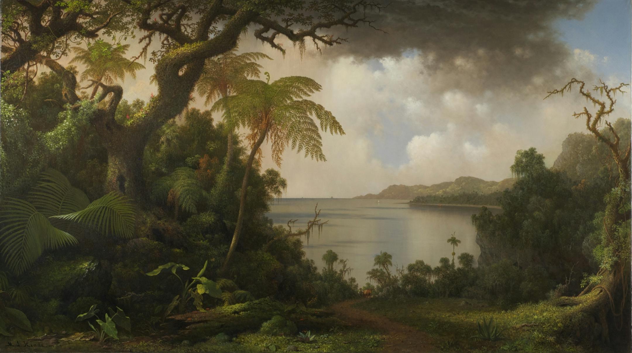 The new paintings include images by English landscape master John Constable (1776-1837), German Expressionist Max Beckmann (1884-1950), American Modernist Stuart Davis (1892-1964), and the romantic American naturalist Martin Johnson Heade (1819-1904) whose "View from Fern-Tree Walk," (1887), above, is a star addition. The pictures are on loan from the museum's founders Robert "Bob" Kierlin and his wife Mary Burrichter.