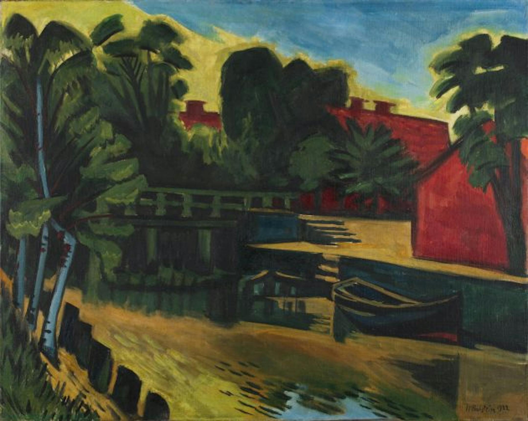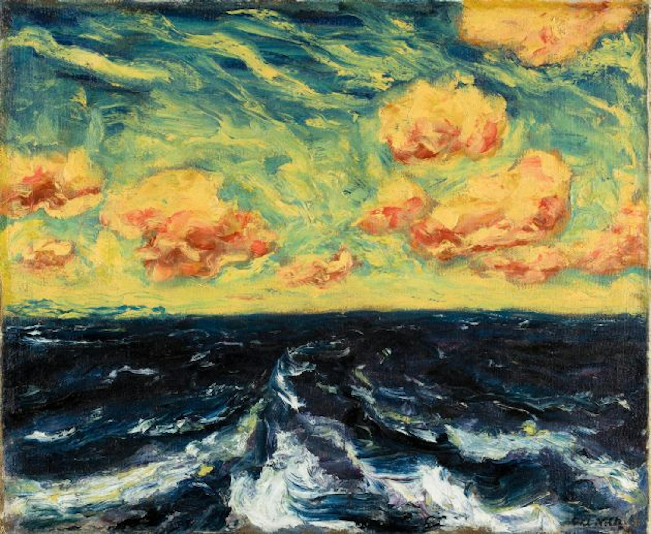 The other three works focus more on water, which is the requirement for any art entering the collection. (The museum's tagline is "Great art inspired by water.") German-Danish painter Nolde's 1910 work "Autumn Sea XII (Blue Water, Orange Clouds) is an oil on jute painting portraying exactly that. German Expressionist Pechstein's 1922 "Great Mill Ditch Bridge" captures a tilted scene of a bridge crossing over a river with bright red buildings in the background. Inspired by Vincent Van Gogh, Pechstein developed an interest in Expressionism.