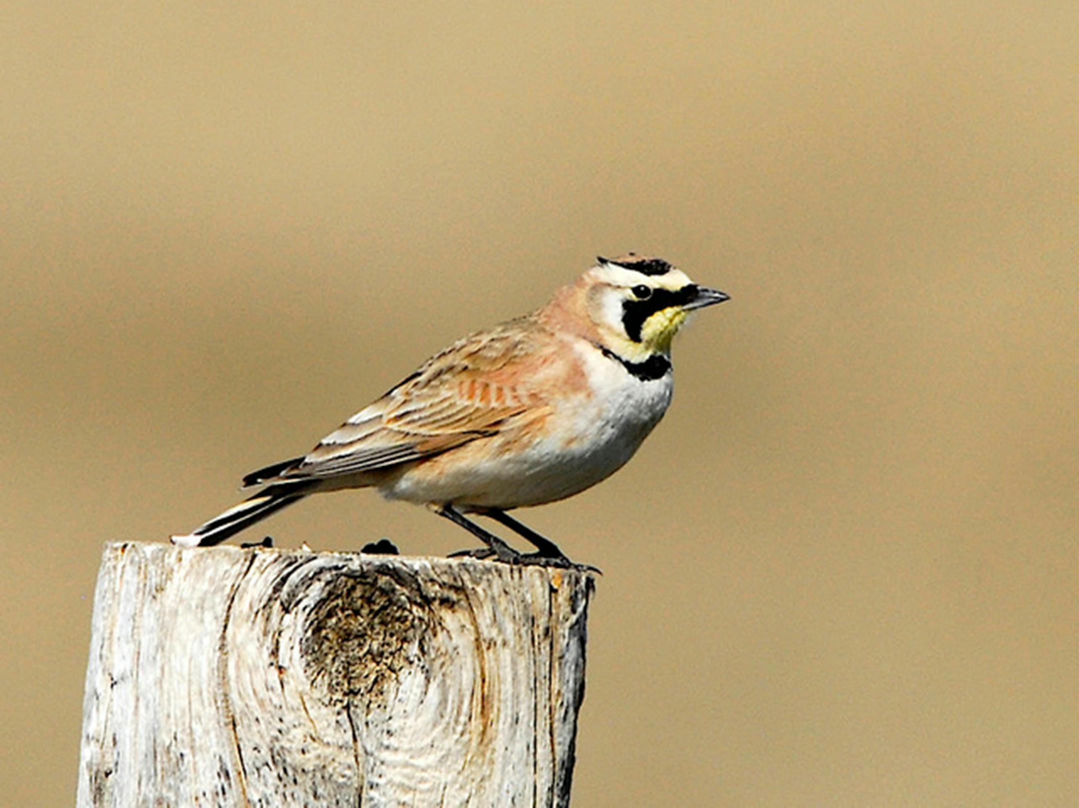 By mid-February, motorists in the southern half of Minnesota often see flocks of the small, grayish-brown horned larks along roadsides and in fields. These are the first of the spring bird migrants each year and are usually in groups of three to 20 that flit up as a car passes.