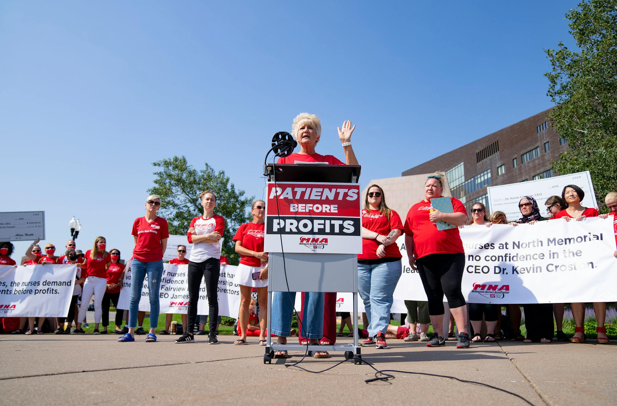"Nurses do not take this decision lightly, but we are determined to take a stand at the bargaining table, and on the sidewalk if necessary, to put patients before profits in our hospitals," said Mary Turner, a nurse at North Memorial Health Hospital and president of the Minnesota Nurses Association, in a statement.