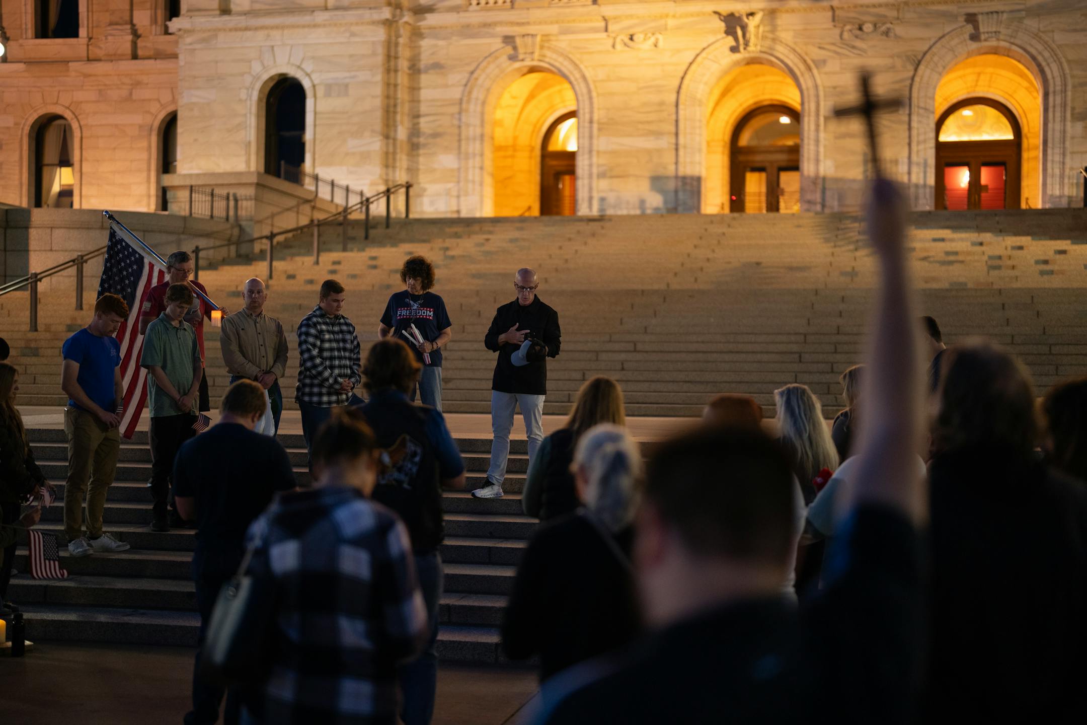 On the steps of the Capitol building, about 75 people gathered to memorialize Kirk, holding candles, Bibles and American flags.