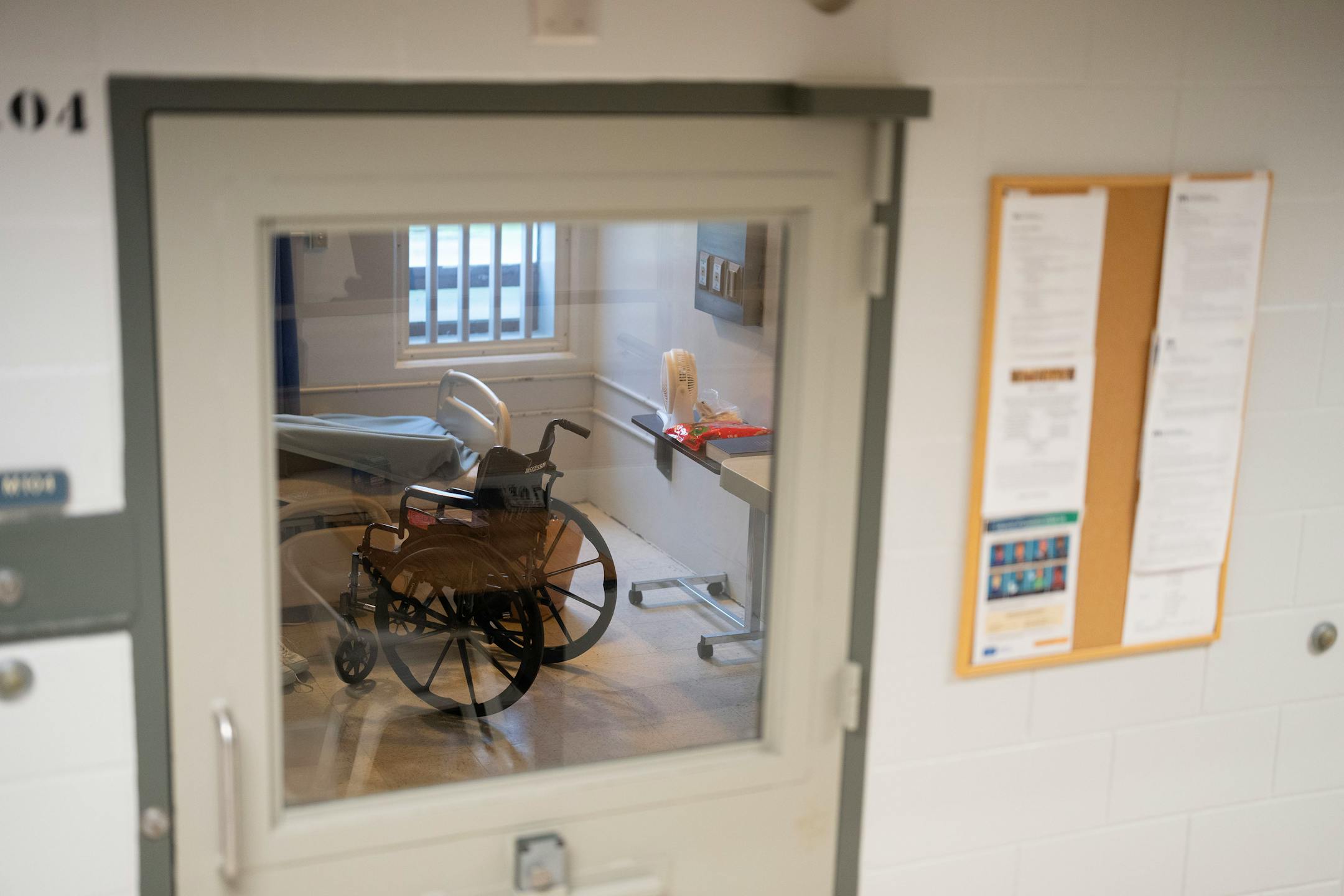 At Minnesota’s most secure prison, in Oak Park Heights, one wing functions more like a nursing home than a cell block. Men in hospital gowns sleep in adjustable medical beds, and wheelchairs crowd the hallways as nurses make quiet rounds. Board games clutter bookshelves on the second floor of the unit.