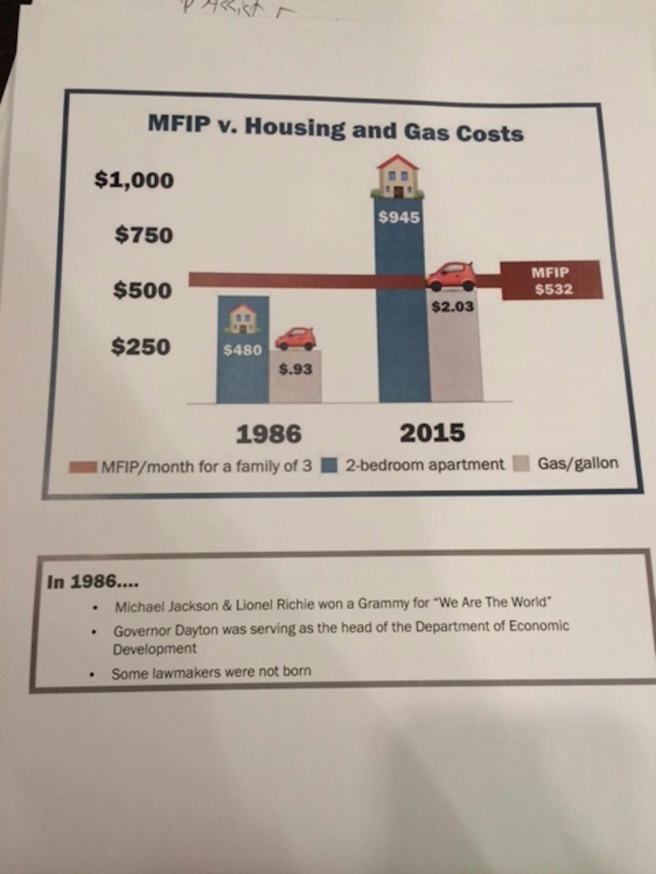 "The stunning reality for the task force was that this grant has not increased since 1986," said Jessica Webster, a staff attorney for Mid-Minnesota Legal Aid. "The grant in 1986 was $532 for a family of three. Today, it is also $532 for a family of three."