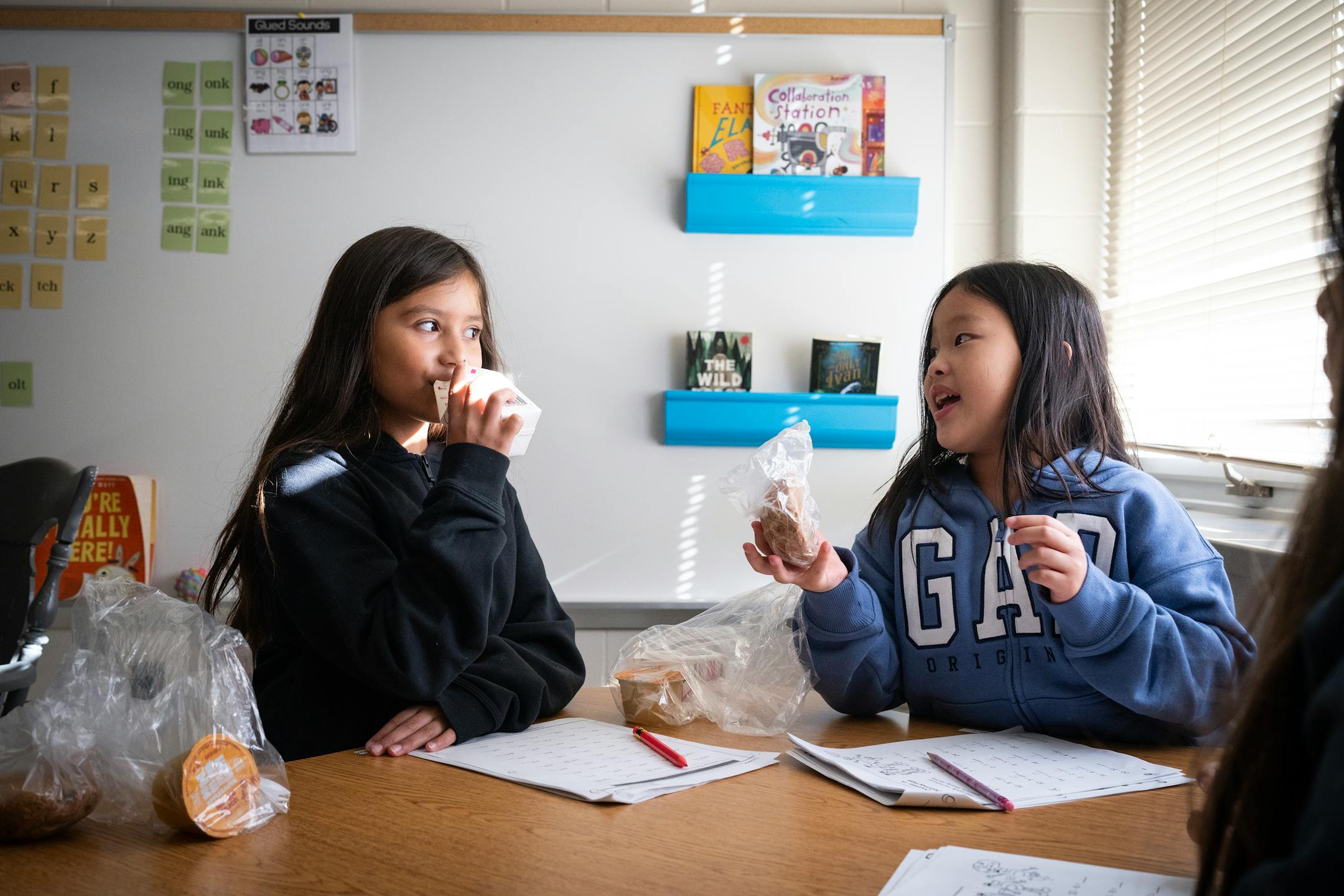 “What are those?” students asked on repeat about the pile of whole-grain apple muffins — a new offering to help meet updated federal requirements limiting added sugar in school meals.
