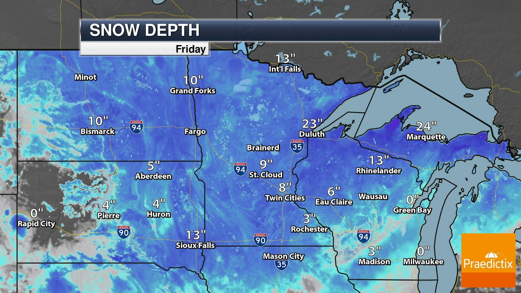 As of Friday, February 10th, the MSP Airport still had 8" of snow on the ground. Meanwhile, there's nearly 2ft of snow on the ground in Duluth, across northern Wisconsin and the UP of Michigan. With several days of warmer weather on the horizon, our snow pack will take a bit of a hit, so get out there and enjoy while it's still around.