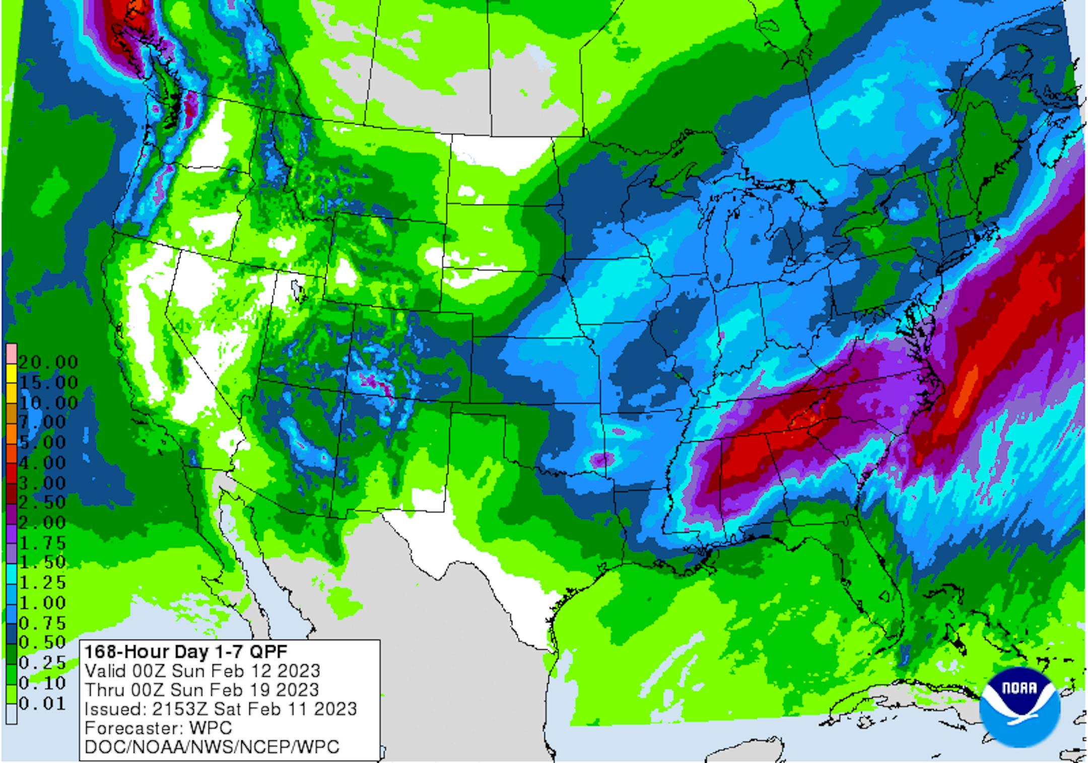 Mild February temperatures look to continue across much of the eastern two-thirds of the nation through at least midweek. A bigger storm system will develop in the Central US midweek with cooler air funneling in later this week. The good news is that this cooler air won't be too terribly cold and it certainly won't be as cold as it was a couple of weeks ago.