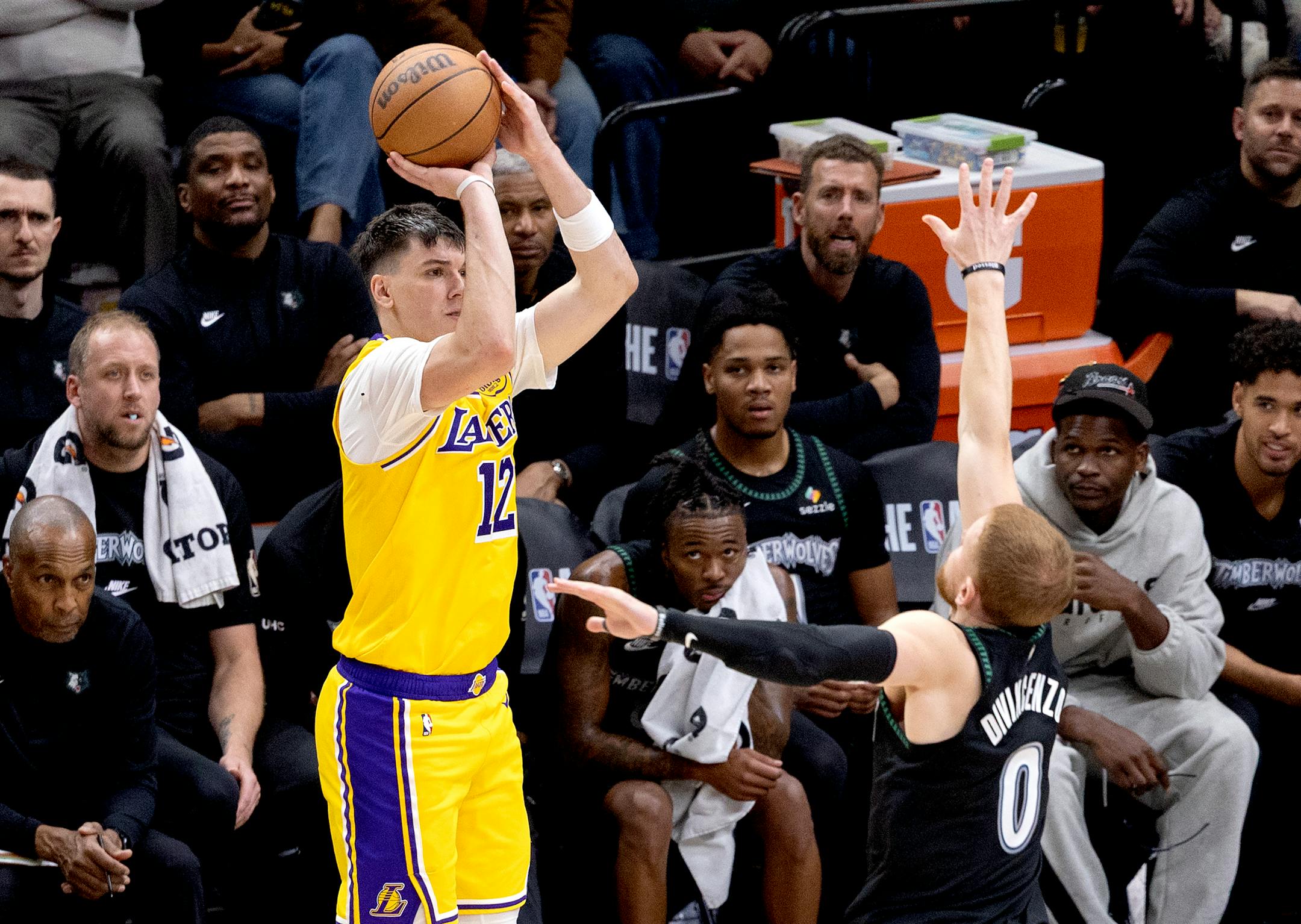 With the Los Angeles Lakers ahead 105-89 in the fourth quarter at Target Center on Wednesday night, a Timberwolves fan shouted loudly in a mostly silent arena, “Who is No. 12?”