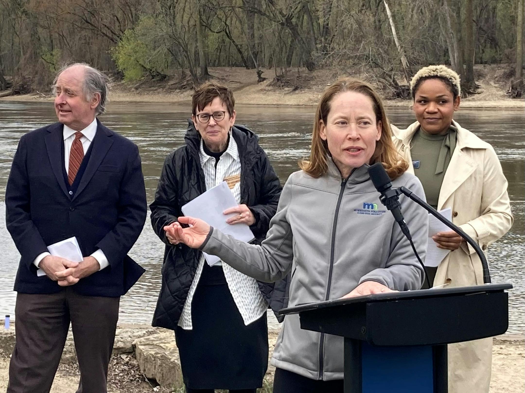 Kessler spoke as the wind whipped through budding oak trees on the shore of the river at Hidden Falls Regional Park in St. Paul. She dipped a jar into the river, and pulled out what will be the first water sample of the effort. “The data collected will help direct resources for decades to come,” she said.