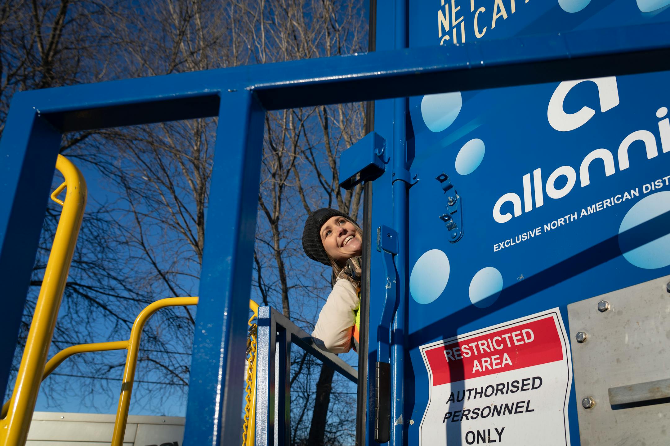 Within the trailer, groundwater will be pumped into large black drums that are topped with clear blue cylinders. Air will be injected into the water to create bubbles — and in the upper chambers, the machine will collect a foam that's brimming with toxic chemicals collectively known as PFAS. The decontaminated water will then be pumped back underground.