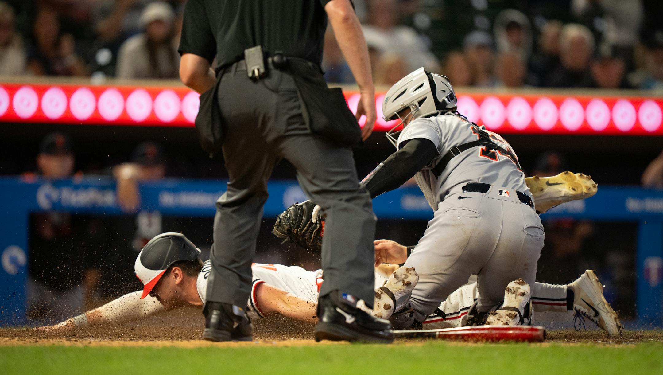 He initially injured his thumb Aug. 10 at Target Field on a catch against the side of the left-field wall. He then aggravated it on Thursday with a headfirst slide at home plate.