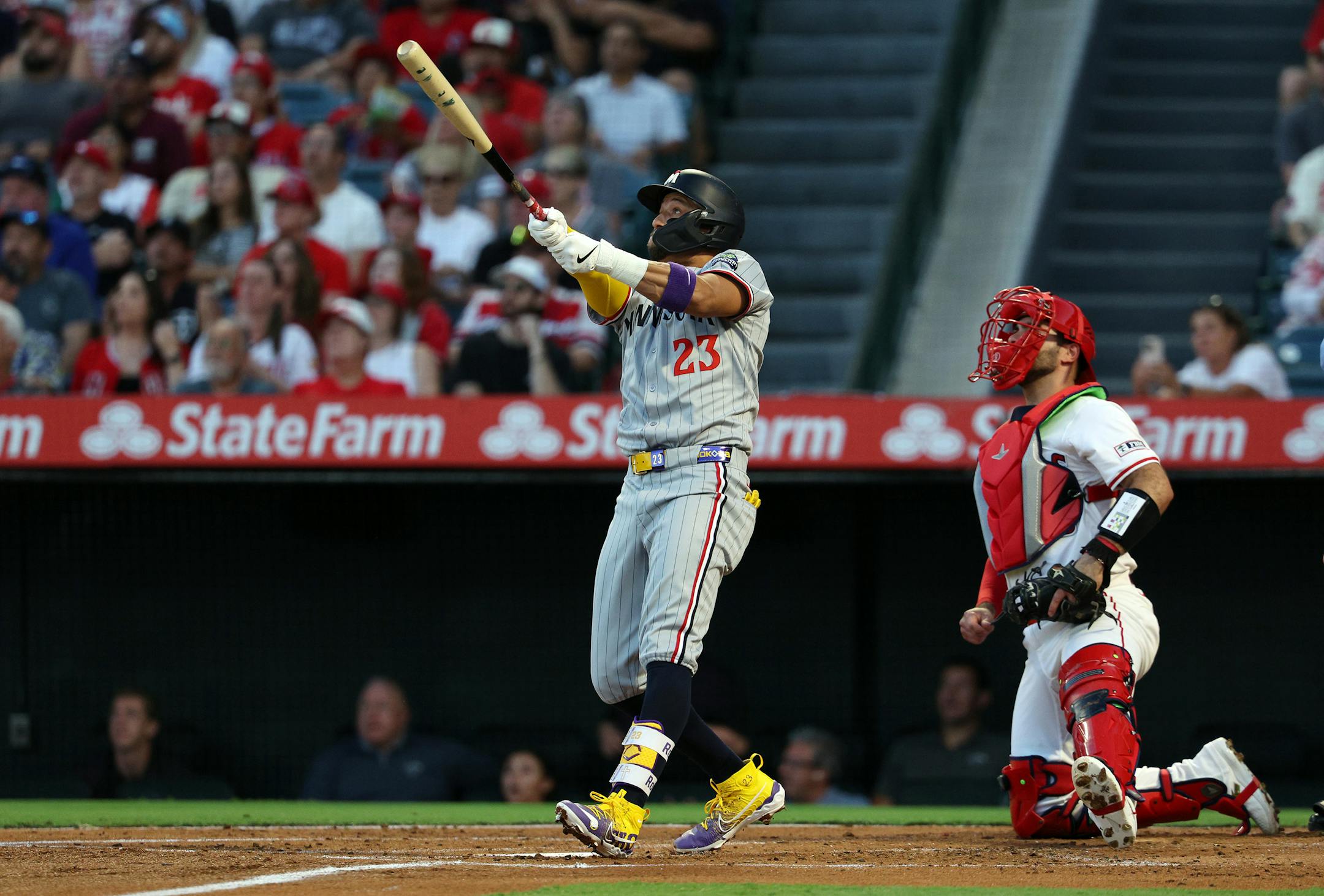 As an encore, Lewis, wearing cleats with the Vikings’ helmet logo painted on them, blasted a fifth-inning fastball over the left-field fence, too, leading the Twins to their second victory in a row, 12-3 over the mistake-prone Los Angeles Angels. Lewis even made a sizzling defensive play, making a throw on the run to retire Taylor Ward on a groundout.