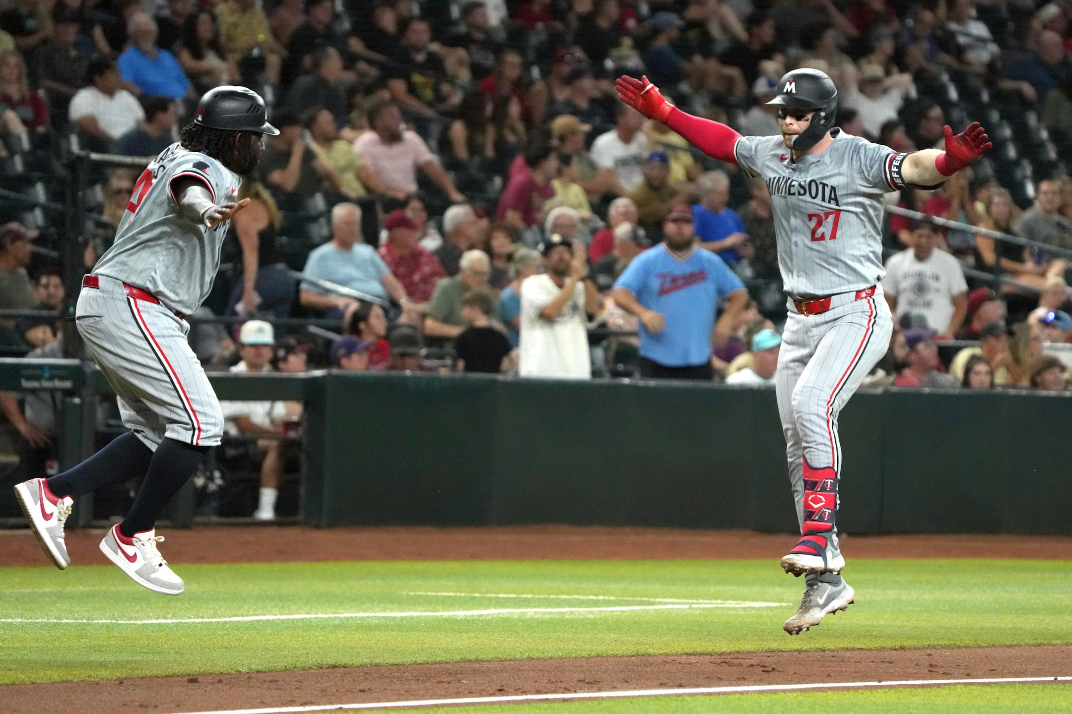 In the top of the seventh inning, D-backs starter Brandon Pfaadt issued a five-pitch walk and saw Buxton reach on an infield single, a hard-hit ground ball that Perdomo couldn’t handle at shortstop. One pitch after Buxton’s single, Jeffers lofted a three-run homer over the left field wall, just beyond Gurriel’s outstretched glove.