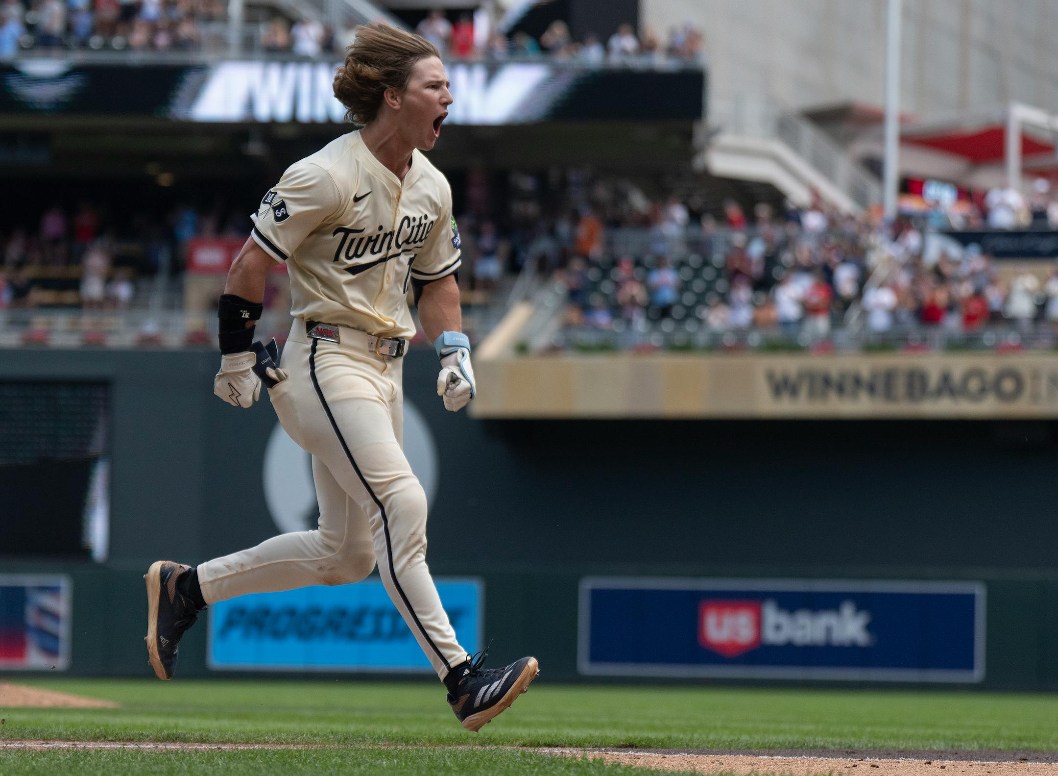 Keaschall, facing Kansas City Royals reliever Carlos Estévez, blasted an elevated 96-mph fastball over the wall in right-center field for a walk-off, two-run homer in a 5-3 Twins victory at Target Field. Keaschall punched the air with his right arm and jumped in the air once the ball cleared the wall.