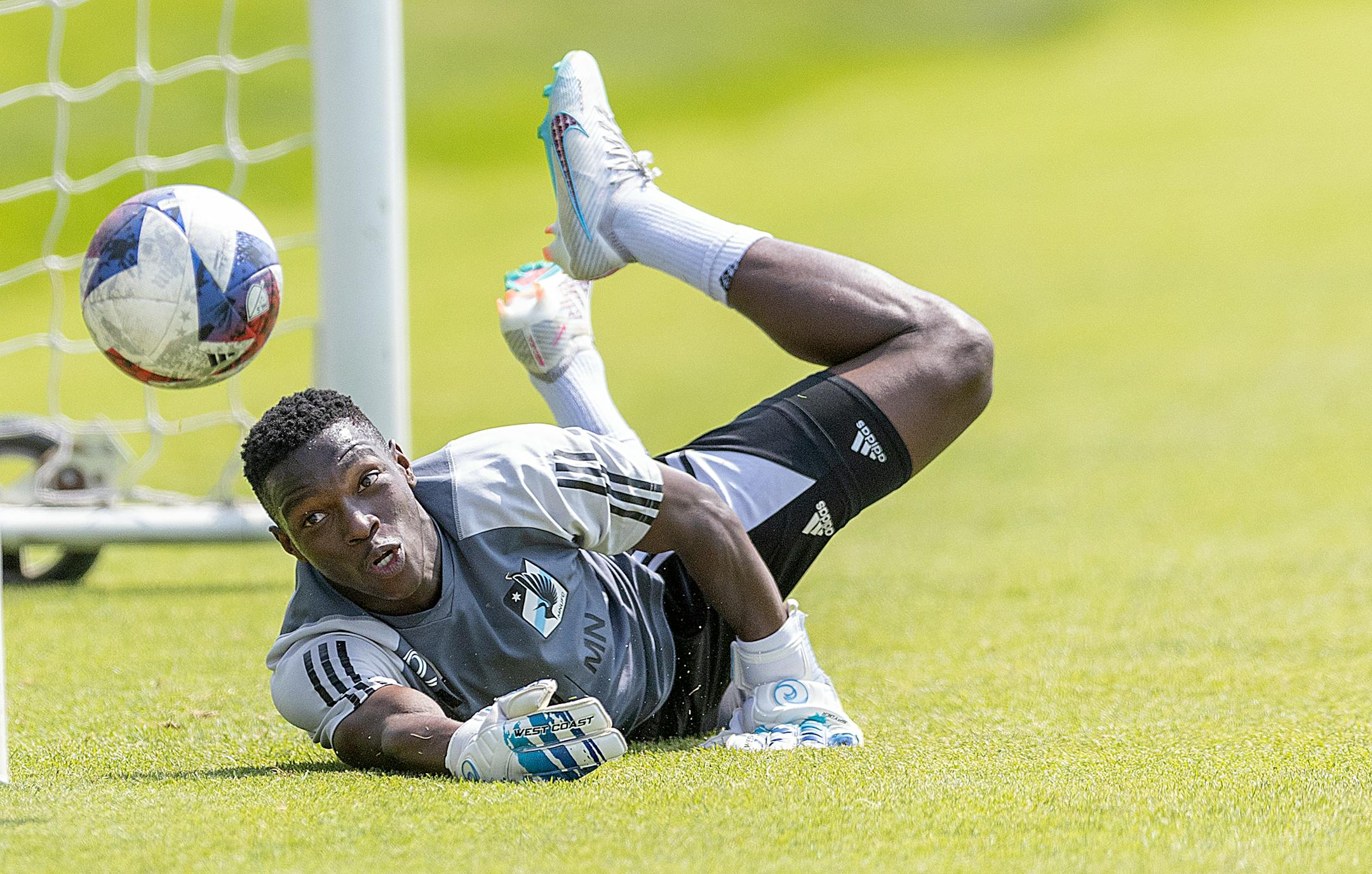 Minnesota United midfielder Bongokuhle Hlongwane moonlighted as a goalkeeper late in Thursday's training session.