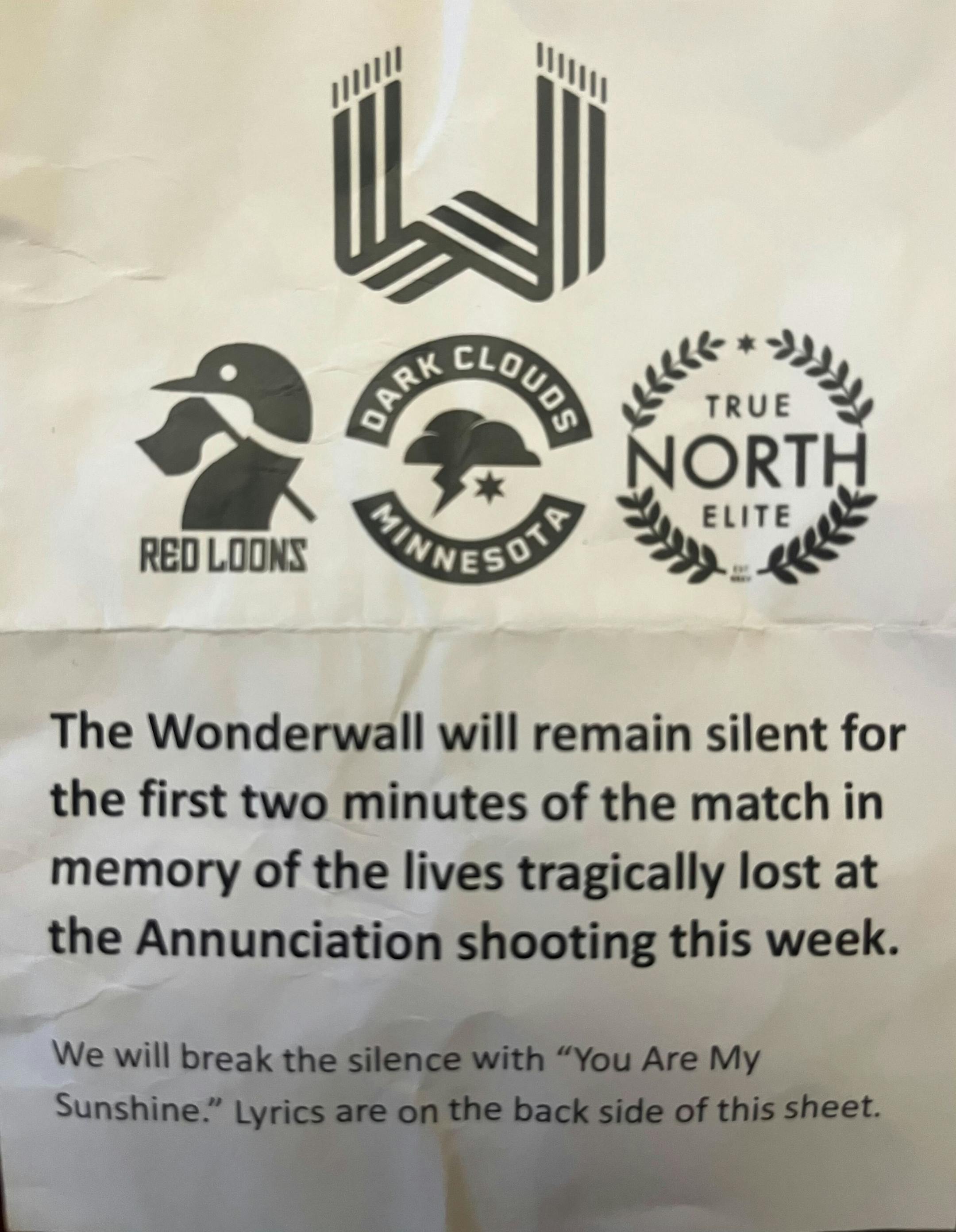 Minnesota United’s fans, players, and coaches added to the tributes to the victims of the Annunciation Church shootings on Saturday night.