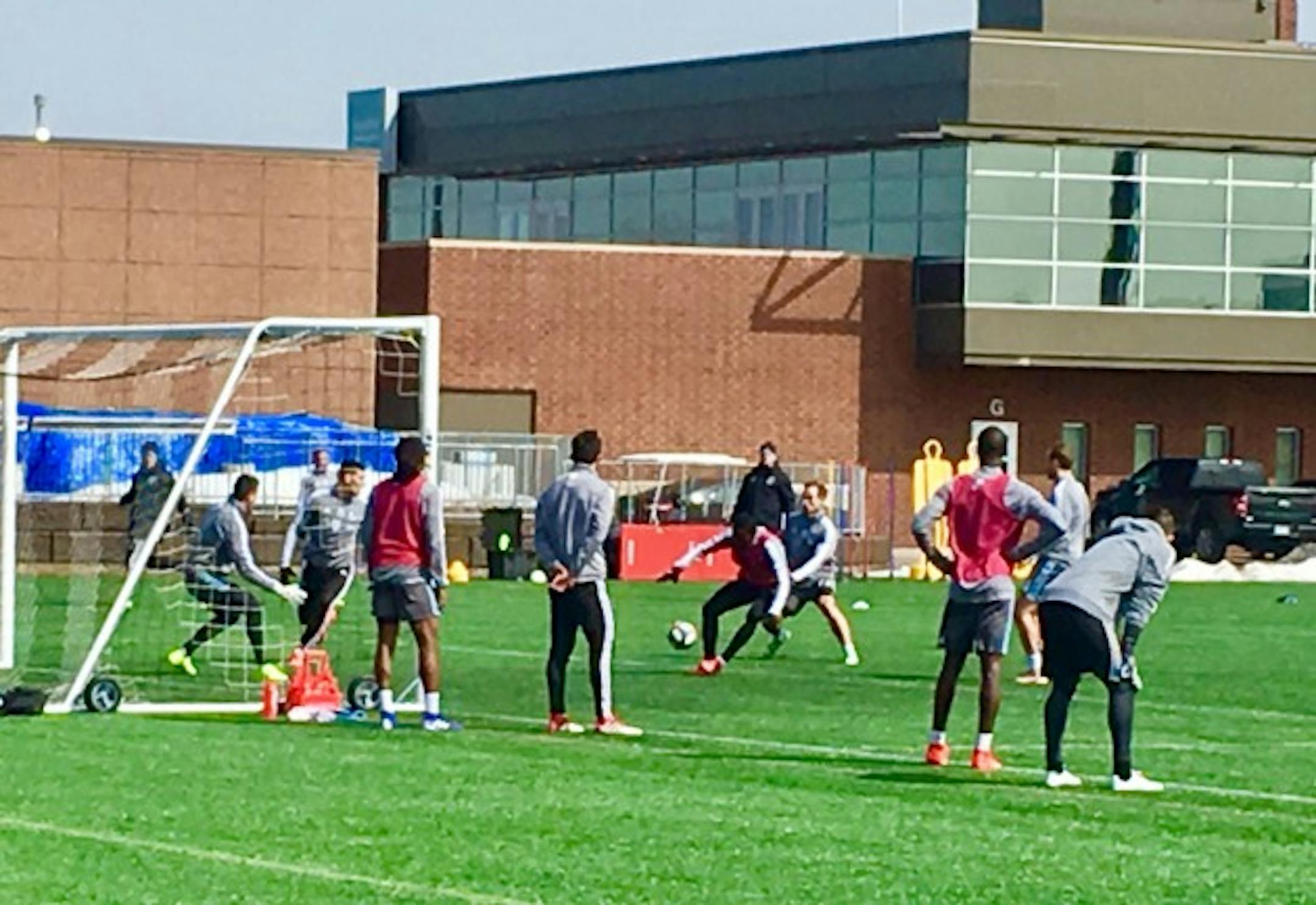 They trained on the National Sports Center's turf field to get ready for a game on turf Saturday and did so under a warm sun but in chilly morning air.