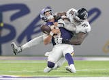 For the most part, third downs have made McCarthy look like the fuzz-faced 22-year-old with two NFL starts that he is. McCarthy is completing 45.5% of his passes (5-for-11) for 65 yards, a 5.9-yard average per attempt, with two first downs, a touchdown, a pick-six and four sacks. He also has two third-down rushing attempts for 20 yards and a touchdown. His team has converted only 7-of-23 third downs (30.4%), including a 19-yard completion to Adam Thielen on third-and-18 on Sunday.