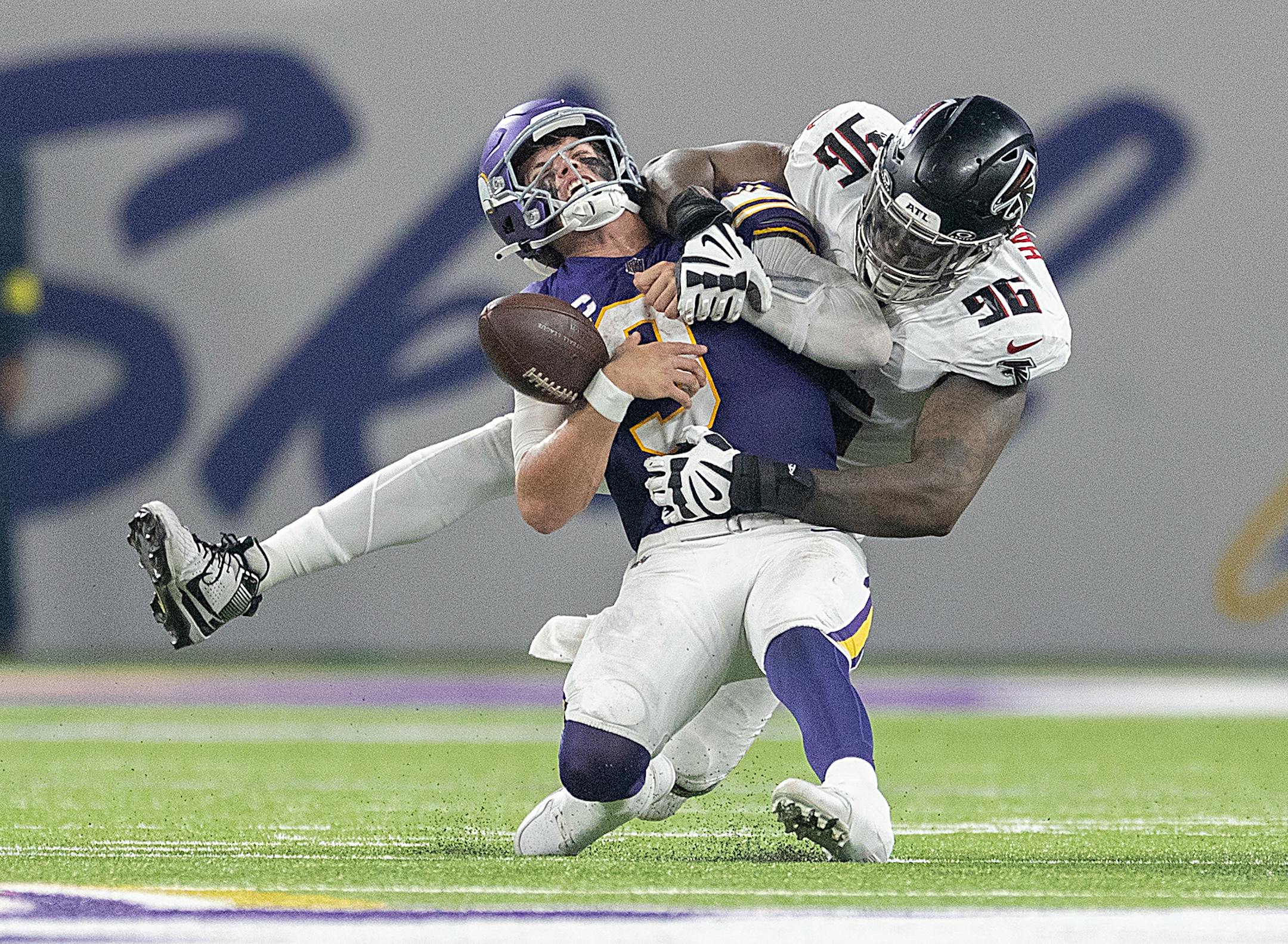 In his debut at U.S. Bank Stadium, McCarthy looked like he was scared inelastic. The Atlanta Falcons defeated the Vikings 22-6 as he completed 11 of 21 passes for 158 yards, zero touchdowns and two interceptions. He took six sacks and fumbled three times, losing one.