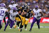 Right tackle Brian O’Neill left Sunday’s 24-21 loss to the Pittsburgh Steelers with a knee injury he suffered when Will Reichard kicked a first-quarter field goal. O’Neill will have a magnetic resonance imaging exam Monday to determine the severity of the injury, Vikings coach Kevin O’Connell said.