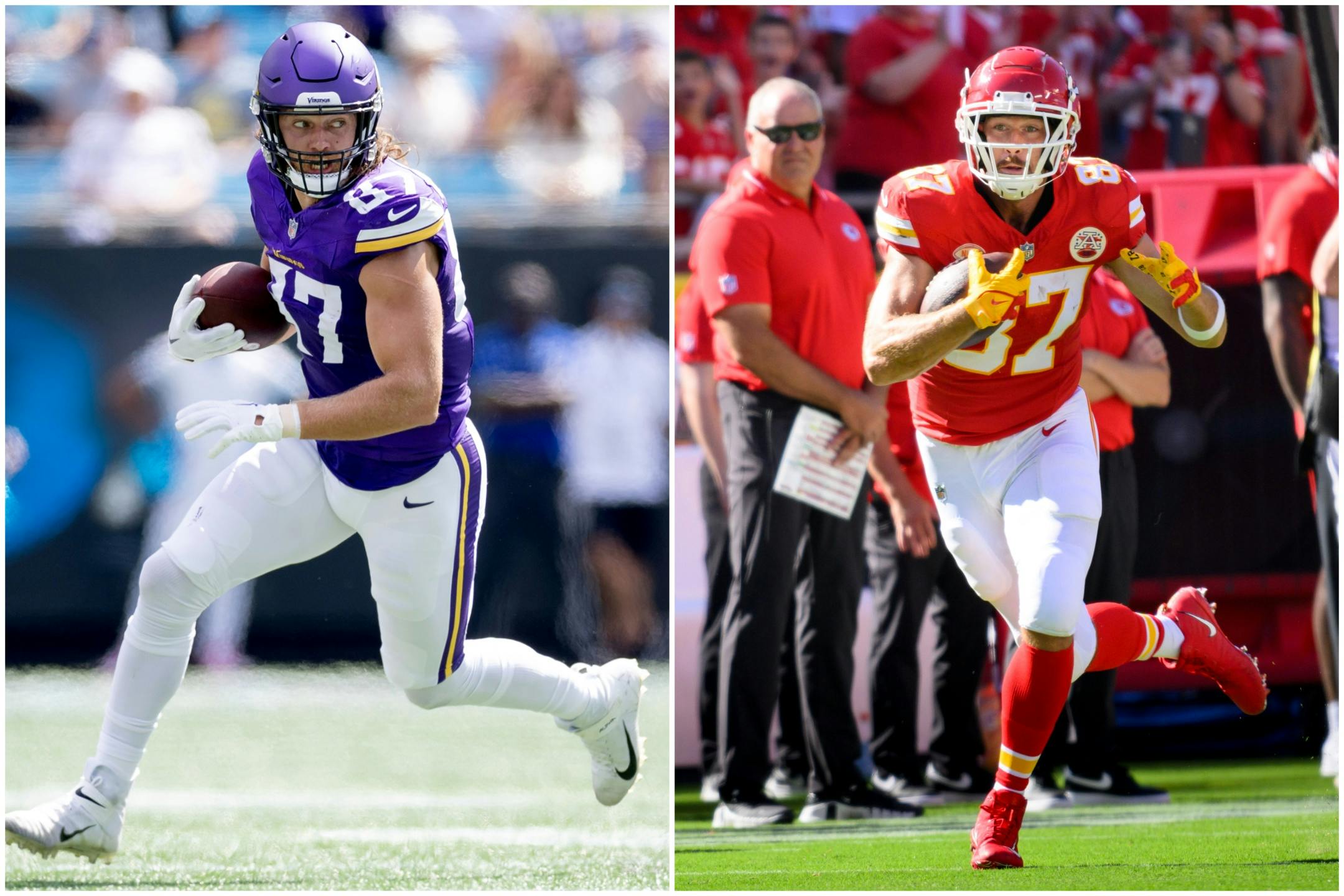 It's also the fourth-highest rate in the league, as Hockenson leads all NFL tight ends with 31 targets through four games while continuing the role he played last season as Cousins' No. 2 option behind Justin Jefferson after being acquired from Detroit in November. The Chiefs have the third-highest team rate at 29.6%. Even though Kelce missed the first game of the season with an injury, he's fifth in the league with 26 targets in the three games he's played. Hockenson and Kelce each have two touchdown catches.