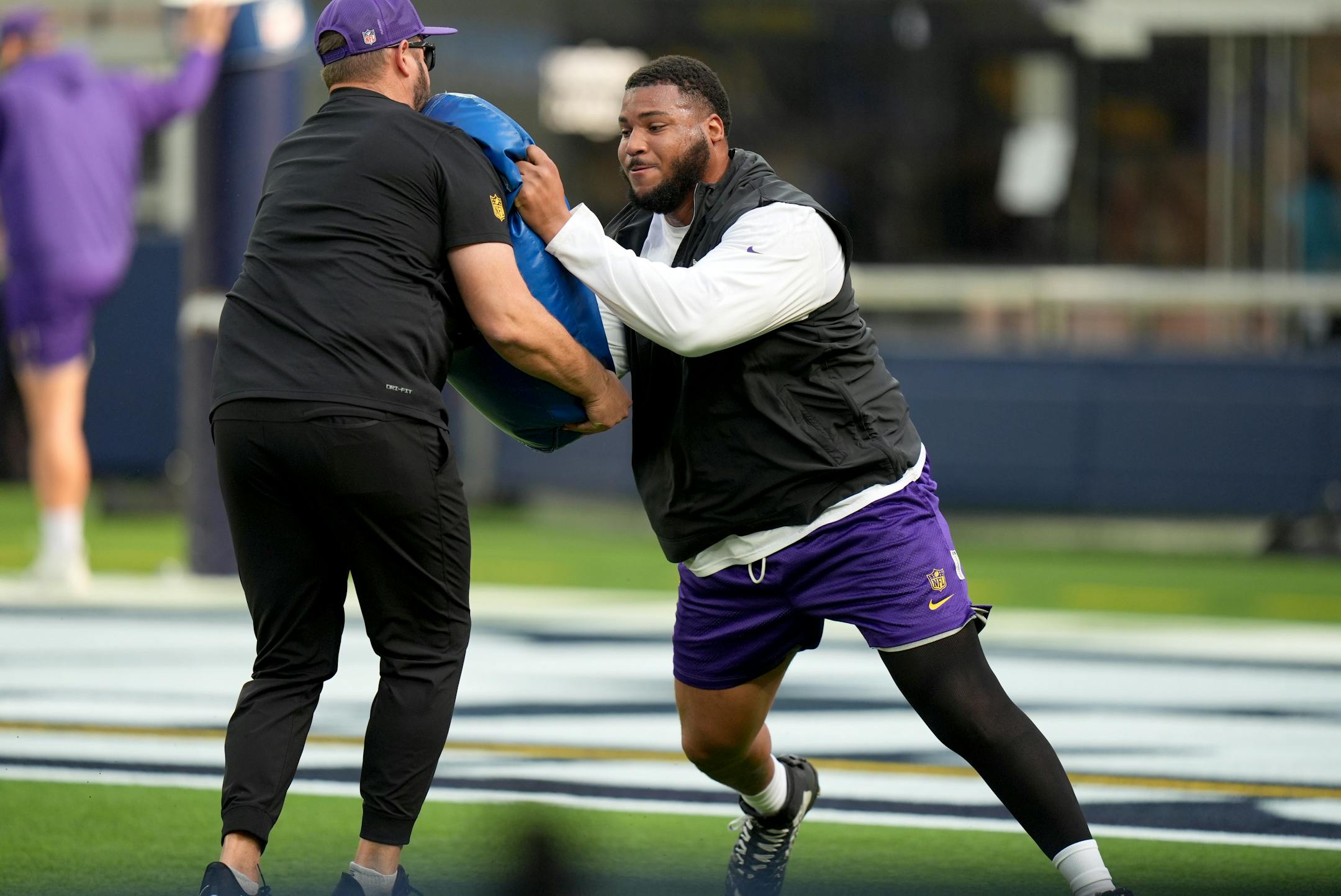 INGLEWOOD, CALIF. - Vikings left tackle Christian Darrisaw made it through only two offensive series in Thursday night’s 37-10 loss to the Chargers at SoFi Stadium, where a year ago he suffered a season-ending knee injury that’s still limiting him.