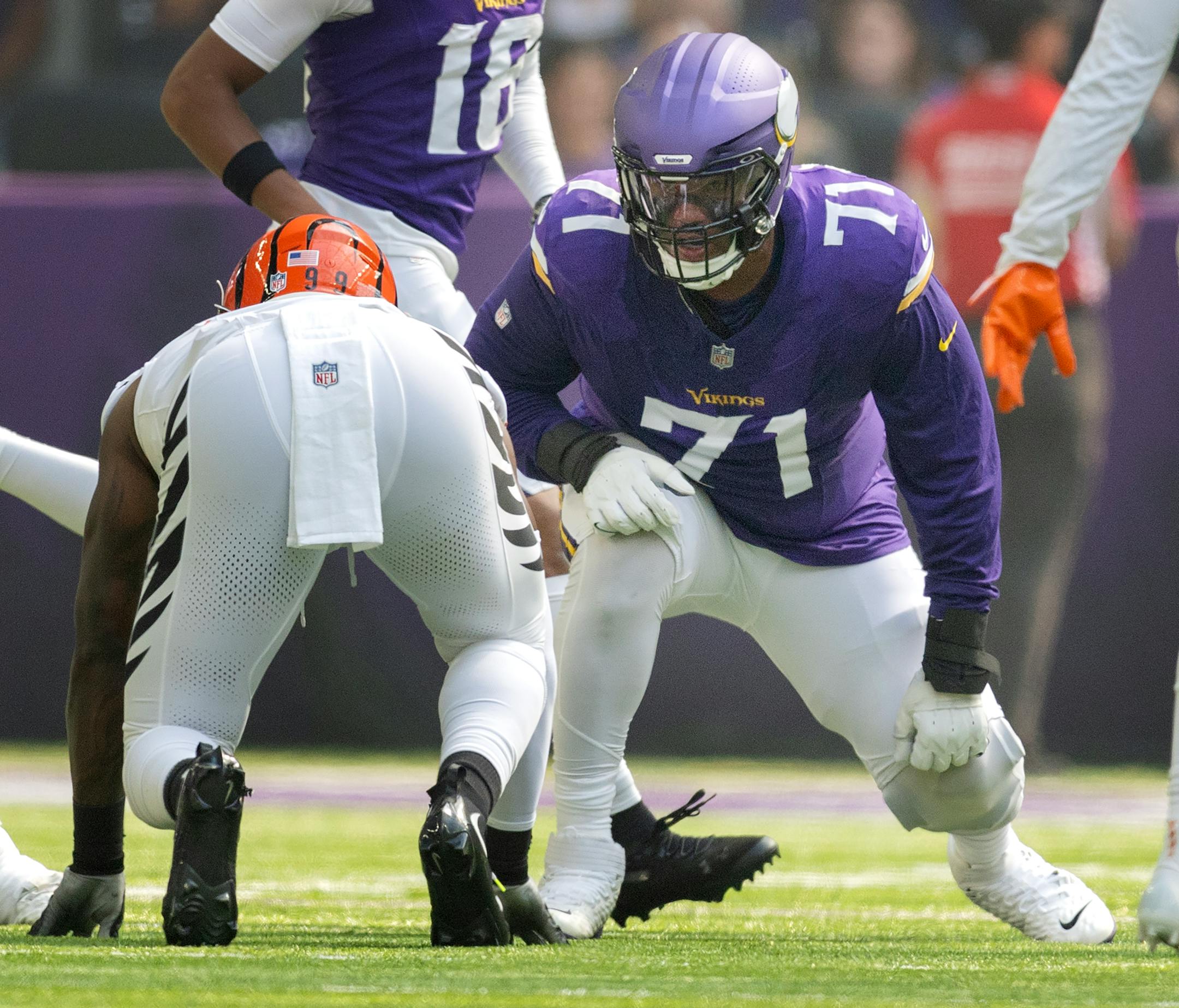 Darrisaw made his season debut in Sunday’s 48-10 rout of the Cincinnati Bengals, which came roughly 11 months after his injury. He started and played almost every meaningful snap, missing only the end of the blowout victory and a four-play sequence before halftime when he went to the locker room to get taped up.