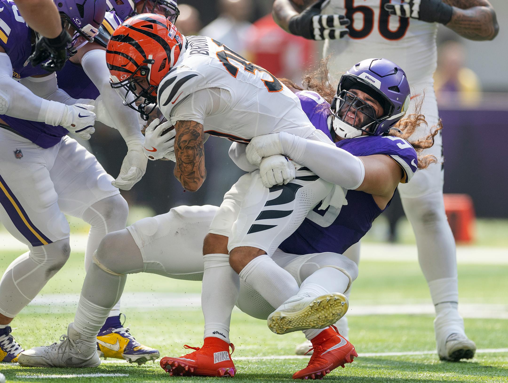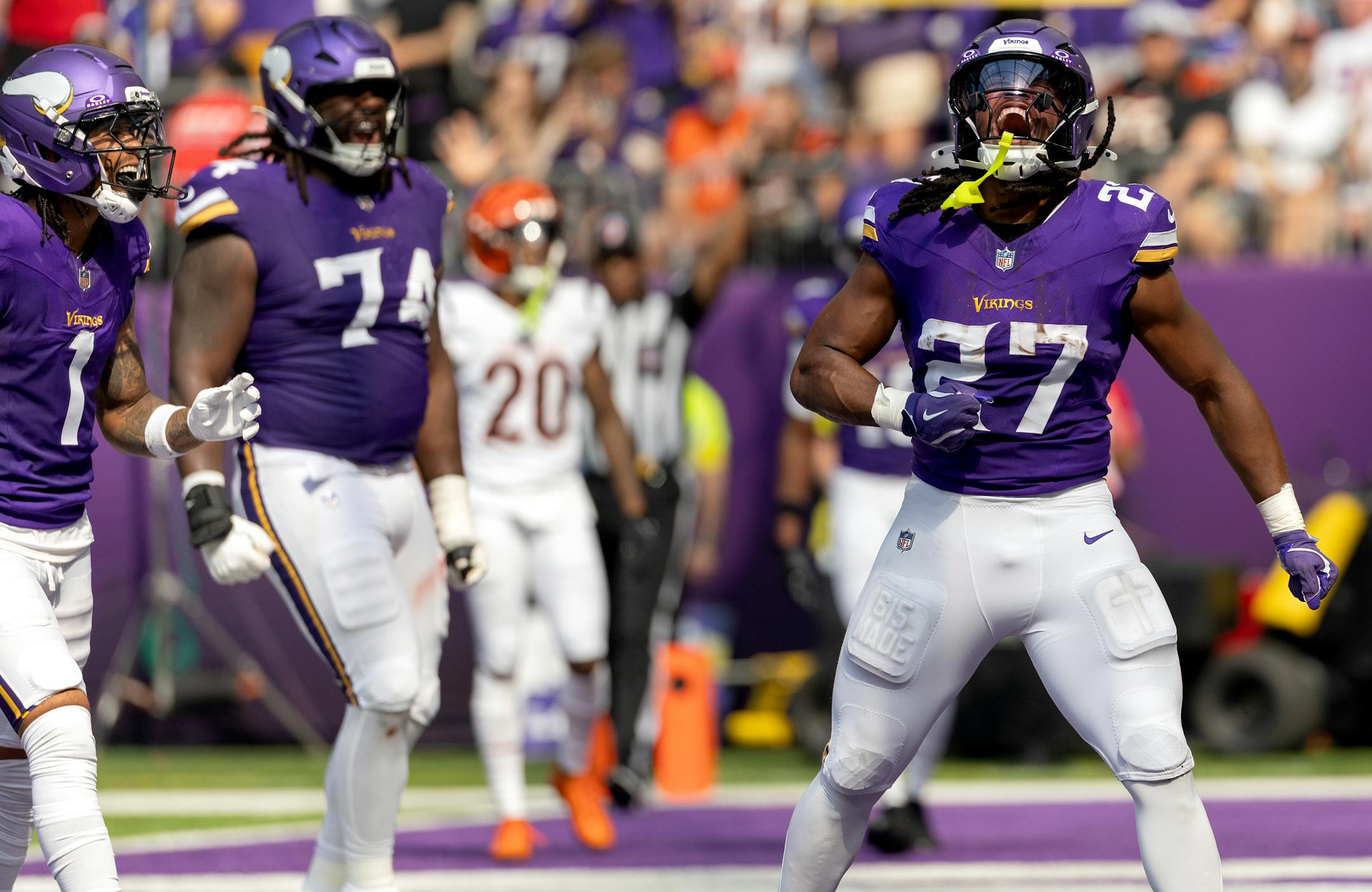 Jordan Mason’s first touchdown run as a Viking came behind a rookie left guard who opened the door by blocking two players at two different levels.