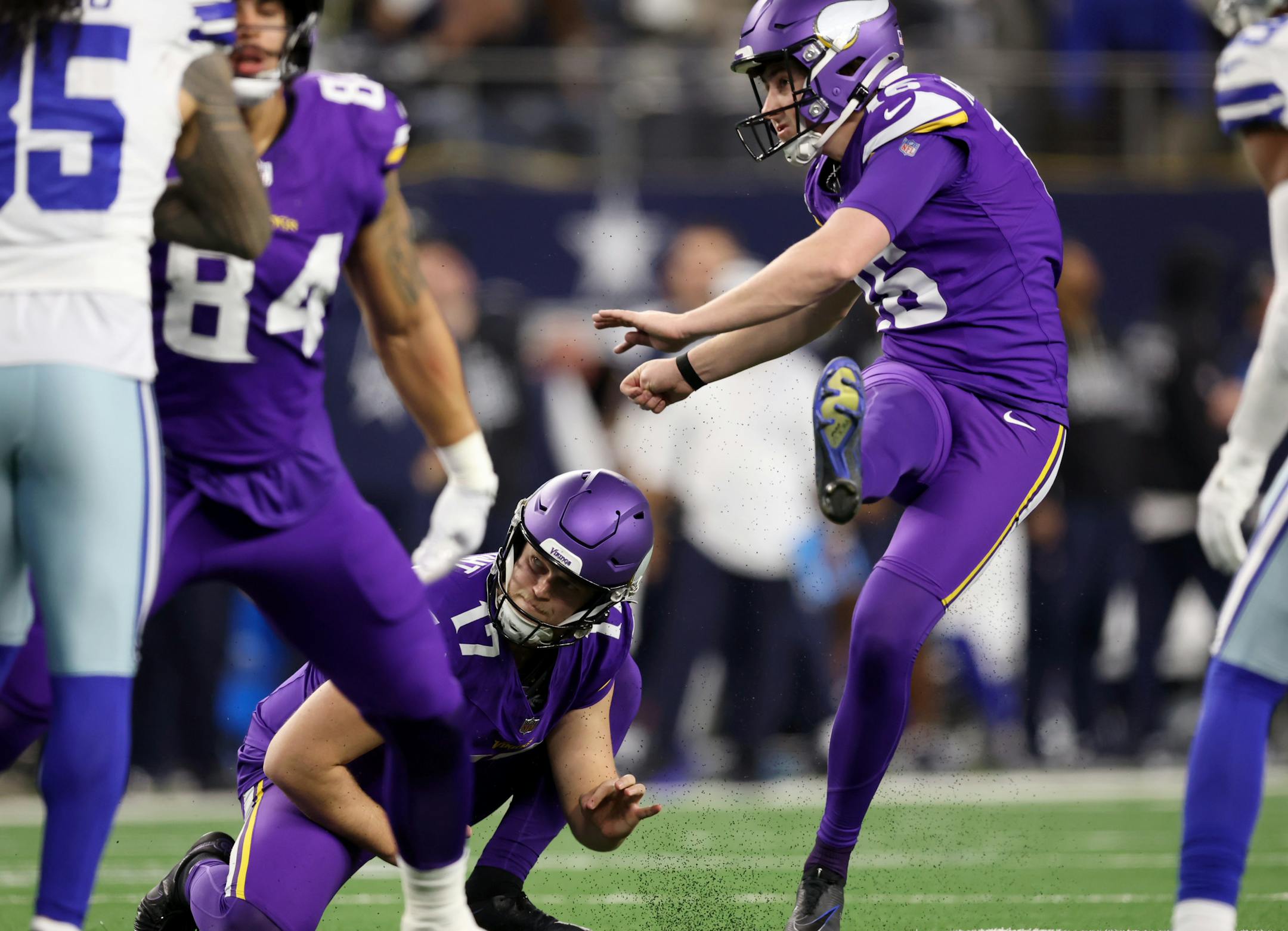Is Will Reichard the best kicker in football? Well, it’s worth thinking about, Associated Press All-Pro voters (including this writer), after the quiet kid did what few have ever done — outkick the Cowboys’ Brandon Aubrey. Aubrey went into the game having made 33 of 38 career field-goal tries from 50-plus. He was 9-for-11 on the season, and those were his only two misses from any distance. He then missed a 51-yarder with the score tied at 14 and a 59-yarder with the Vikings leading 24-23 early in the fourth quarter. On the season, Aubrey has made 88.6% of his field-goal attempts. Reichard, who went 2-for-2 with a long of 53 on Sunday, is 24-for-26 for 92.3% this season. He’s 9-for-11 from 50-plus. Jacksonville’s Cam Little hit a record 68-yarder this season, but he is making 85.2% of his field-goal attempts and has four misses. He also has a missed PAT. Reichard is 65-for-65 in career PATs.